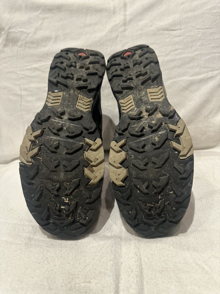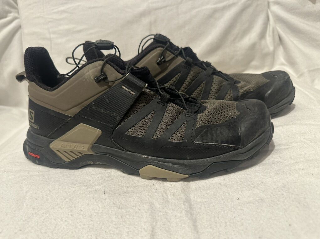 Salomon X Ultra 04 men’s size 10.5 beige/black trail running shoes. These are in good condition, see photos for detail details. I take cash or Venmo, but cash is preferred. Text is best. 801201-4446. Check out my other ads for additional sizes and styles.