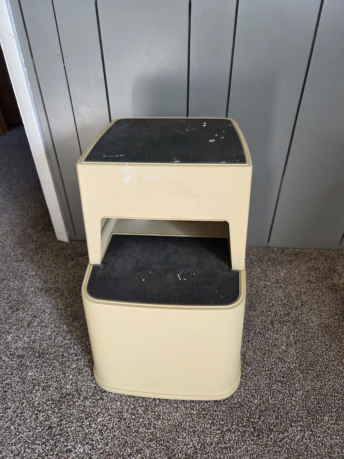 Rolling Step Stool, Curved Design, 2-Step, Retracting Casters, 350 lb Capacity,
