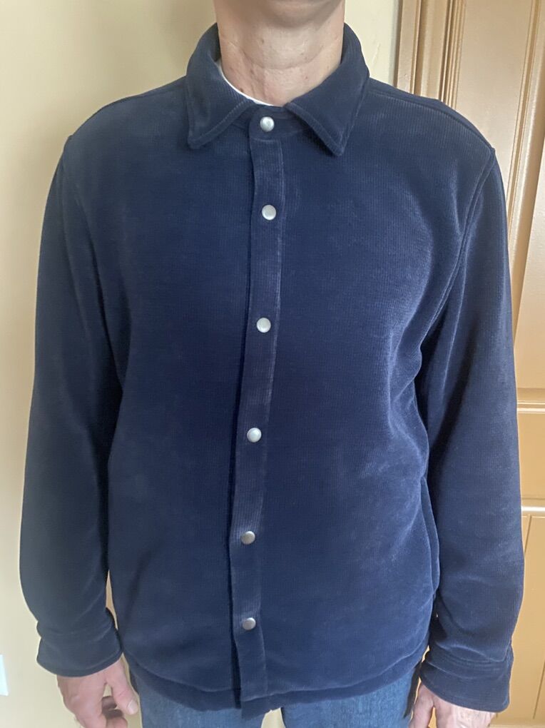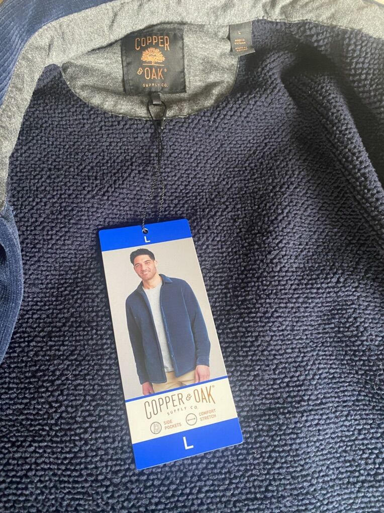 Copper & Oak Men's Fleece Shirt Jacket Heavyweight Snap Buttons New with Tags for sale, size L, color dark blue.