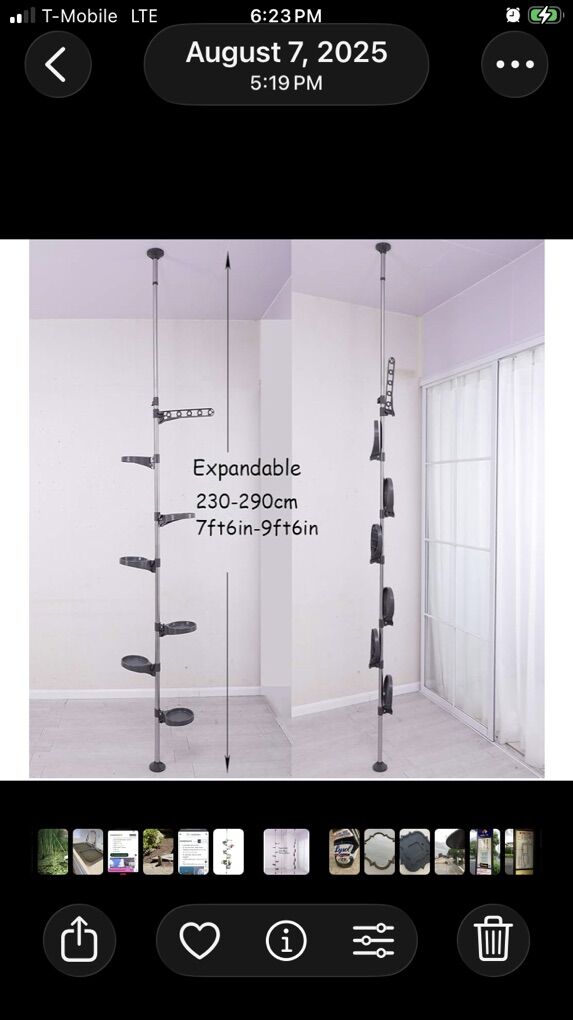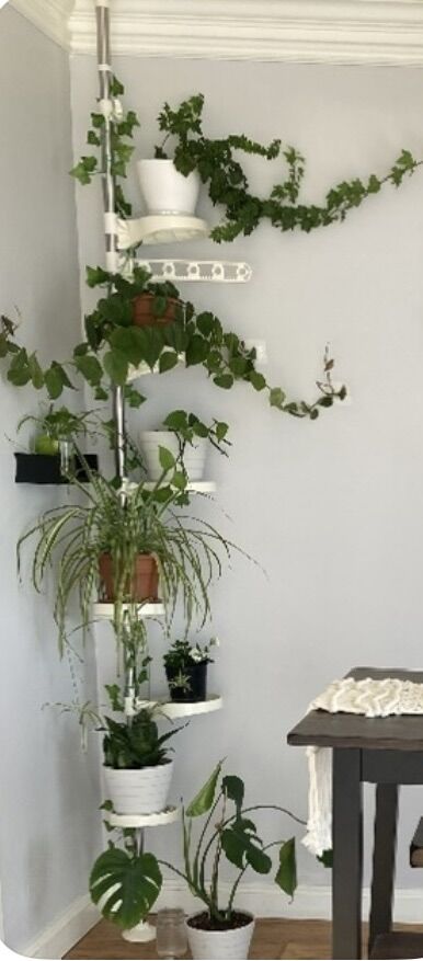 Spring Tension Pole Metal Flower Display Rack Space Saver Corner Floral Pot Hanger Shelf, Ivory
