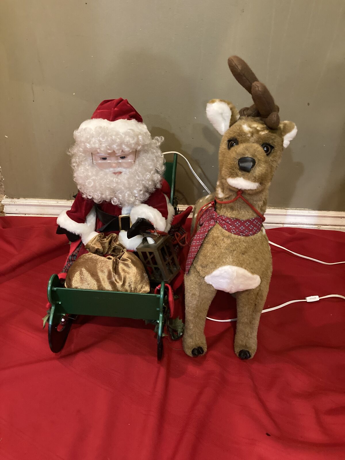 Hello I have a Vintage Santa's Best Animated Lighted Santa With Sleigh & Reindeer Good Condition Works Great Classy Unique Home Decor Great Deal for Collectors Comes With Original Box