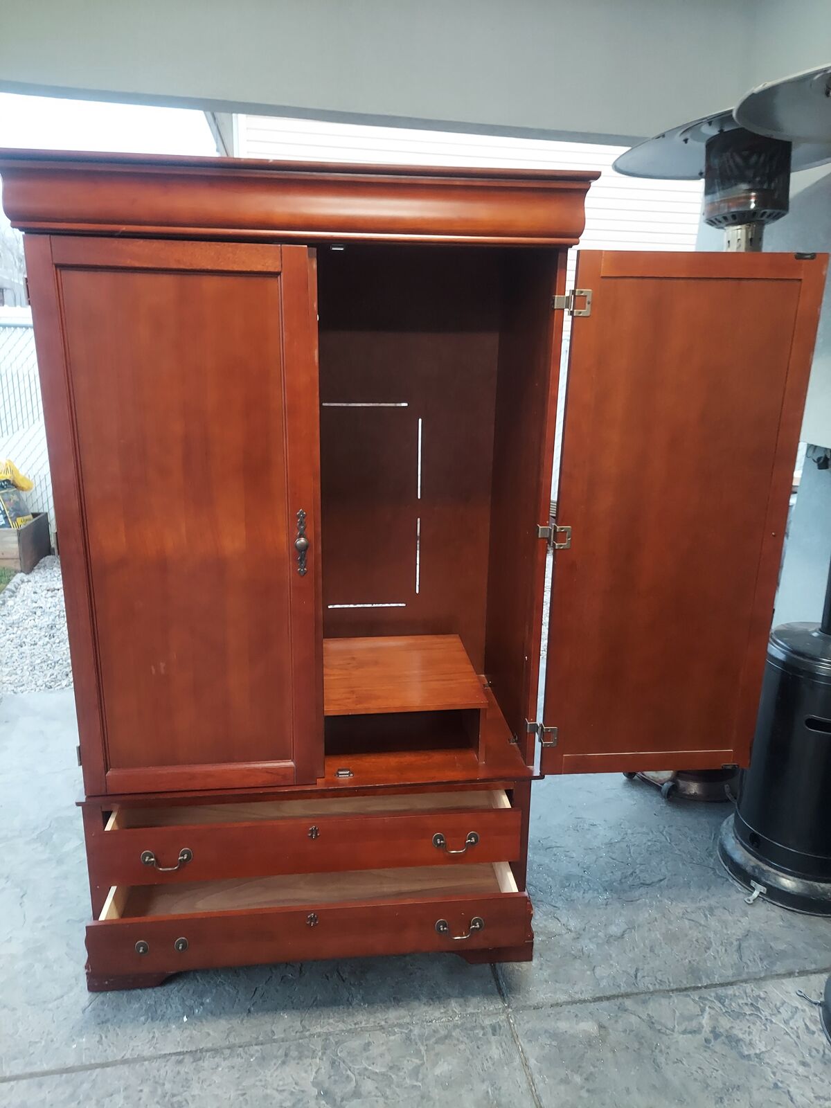 PayPalThis is a listing for a wooden armoire with two drawers. One of the drawers is missing a handle. Other than that, it's in good condition.