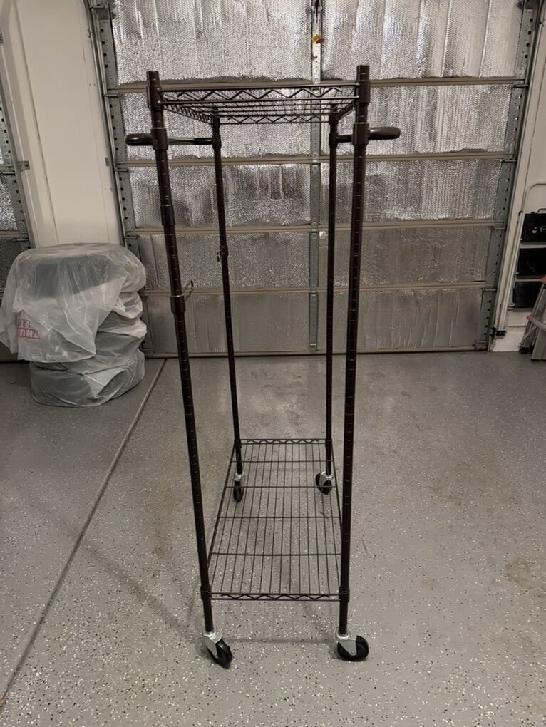 I have this used hanging mobile rack with industrial wheels up for sale asking $20