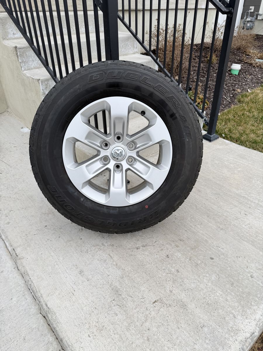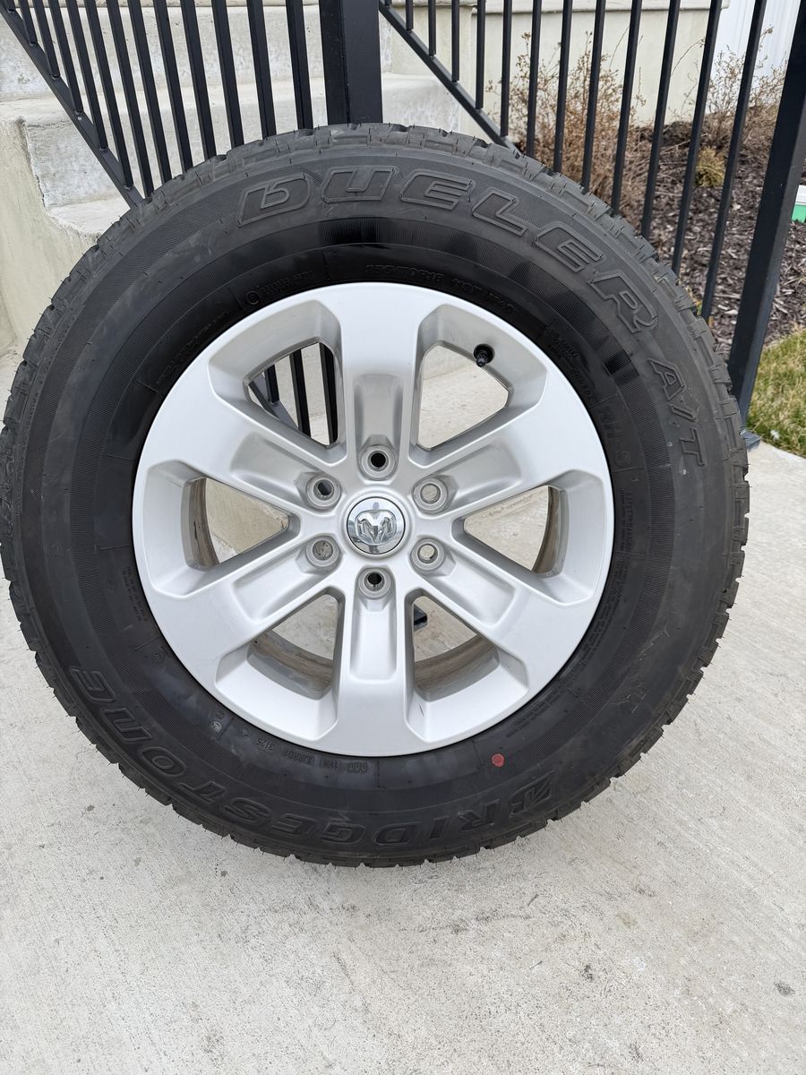 ApplePaySet of 4-Dodge Ram 1500 Rims and Tires 255/70R18 Bridgestone Dueler like new in excellent condition asking $1000 obo Tires are like new 90% life left Rims are new takeoffs I can sell the rims and tires separately Bolt pattern 6-5.5 or 6-139.7 Text anytime 385-402-2292