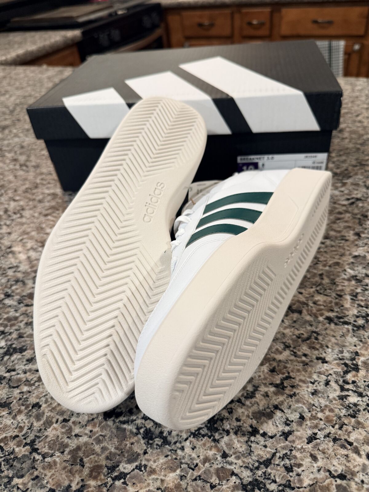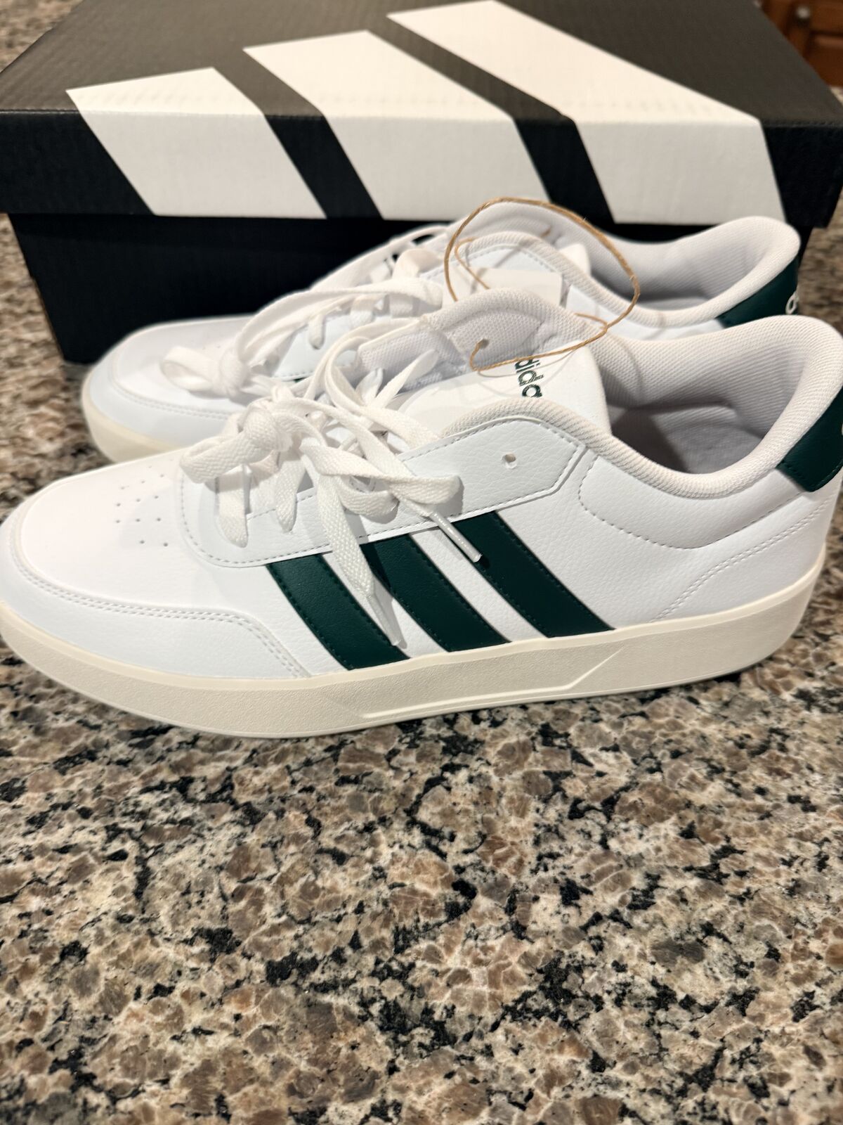 VenmoBrand New Mens Size 10 Adidas Breaknet 3.0 athletic shoes. They are white with green stripes.