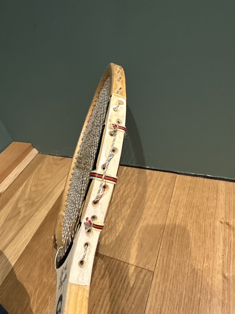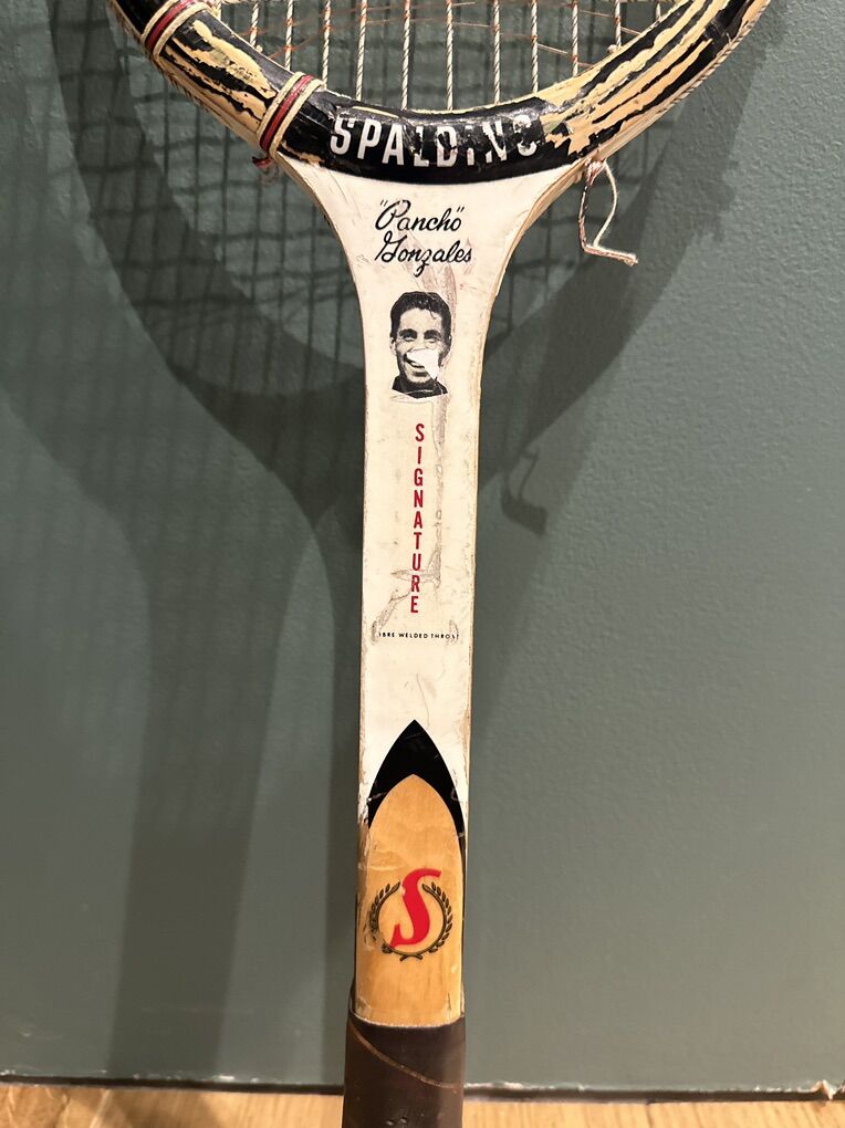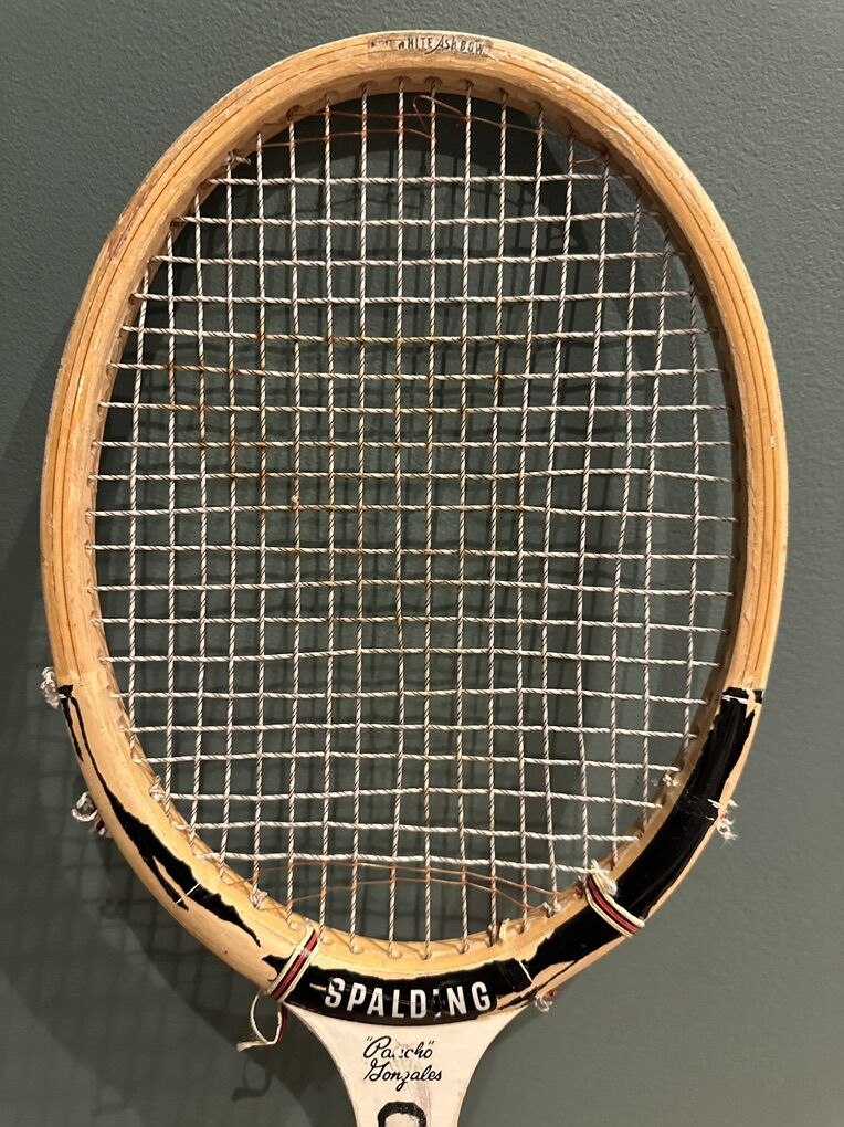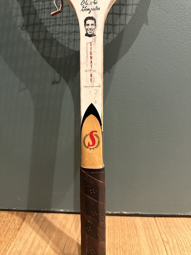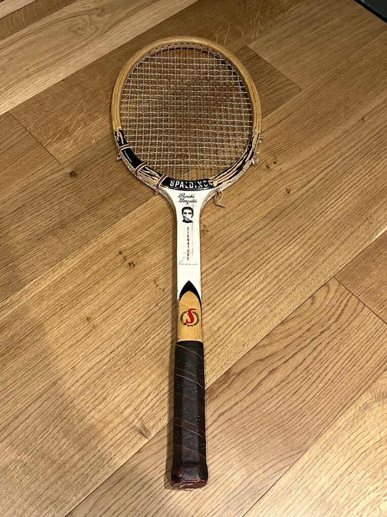 VTG SPALDING PANCHO GONZALES SIGNATURE WOOD TENNIS RACQUET. ANTIQUE DISPLAY