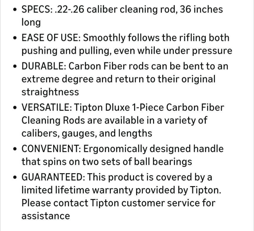 VenmoBrand new Tipton carbon fiber cleaning rod. Never used. 36" long. for 22-26 caliber.
