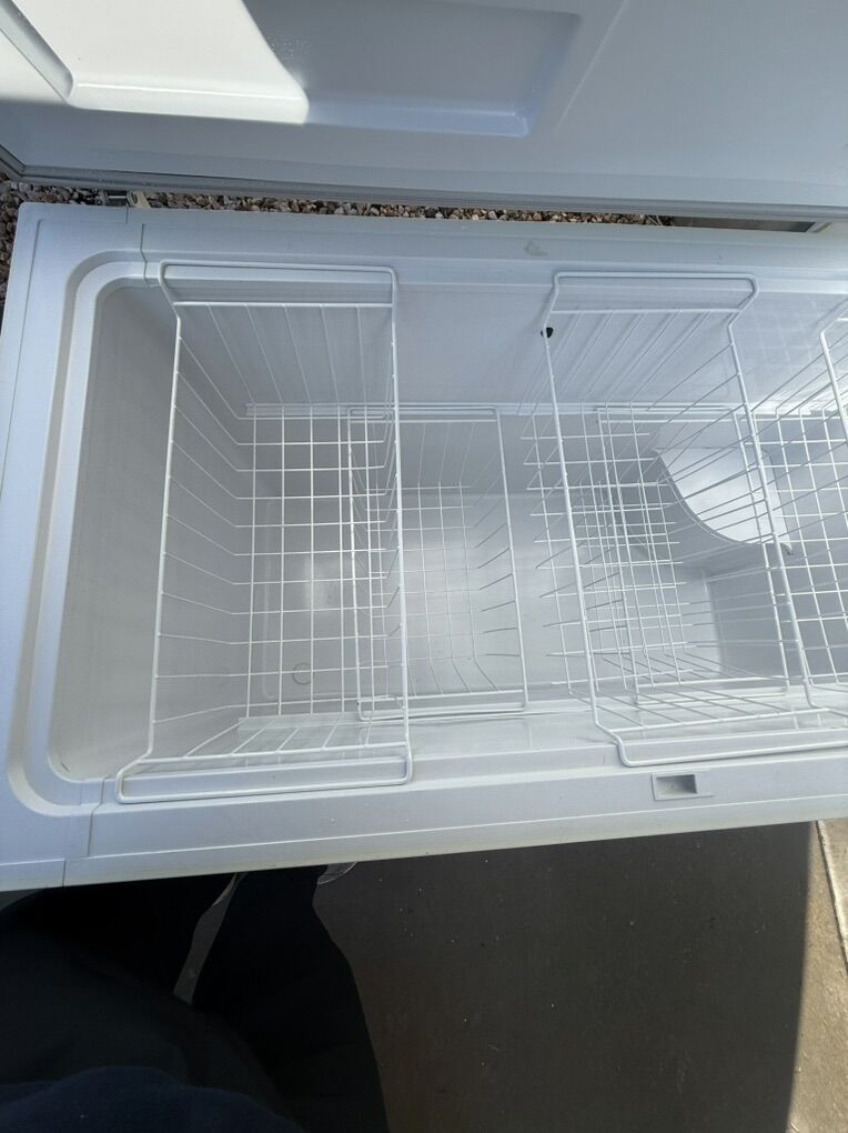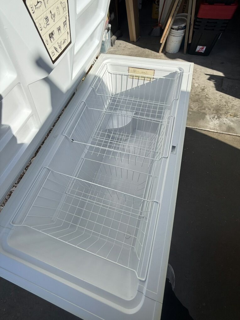 VenmoLarge chest deep freezer in great condition made by Woods. Works great. No mildew ever, no smells ever. Always kept clean. Comes with 5 hanging wire baskets. 123 gallons in size when 467 liters was converted. Made in Canada. Has lock and key. Has interior light when the lid is opened. Has a warning buzzer also. 115 Ac/ 60 hz power. Used for years and has always works like the day i got it new. Moving and I can’t take it. Perfect for the hunter, fisherman or stocking up on frozen food. This fits an enormous amount of food. $300