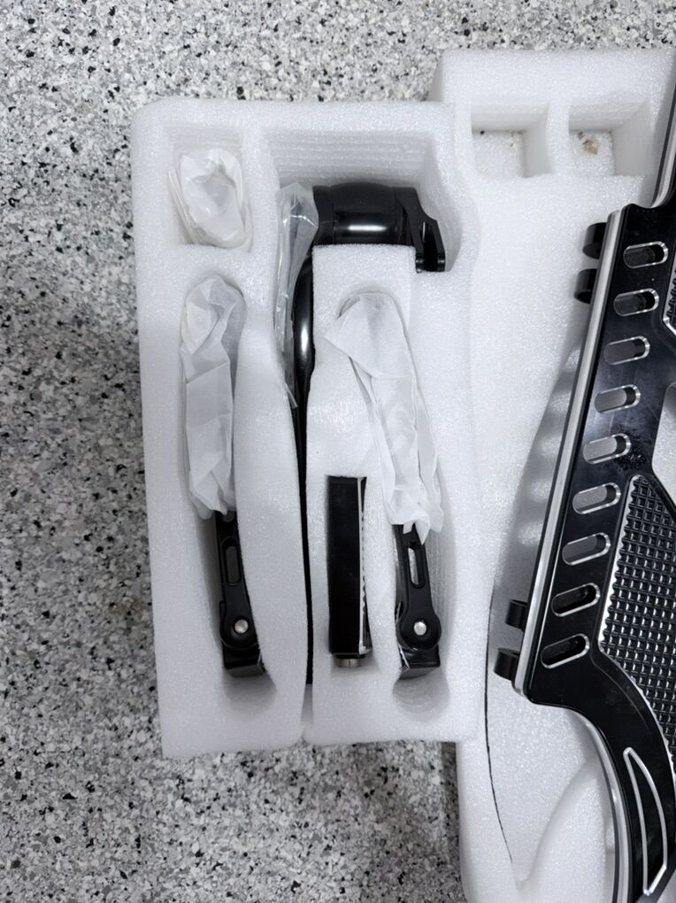 Full set of billet driver and passenger floorboards with matching shifter and brake pedal. Brand new never installed.