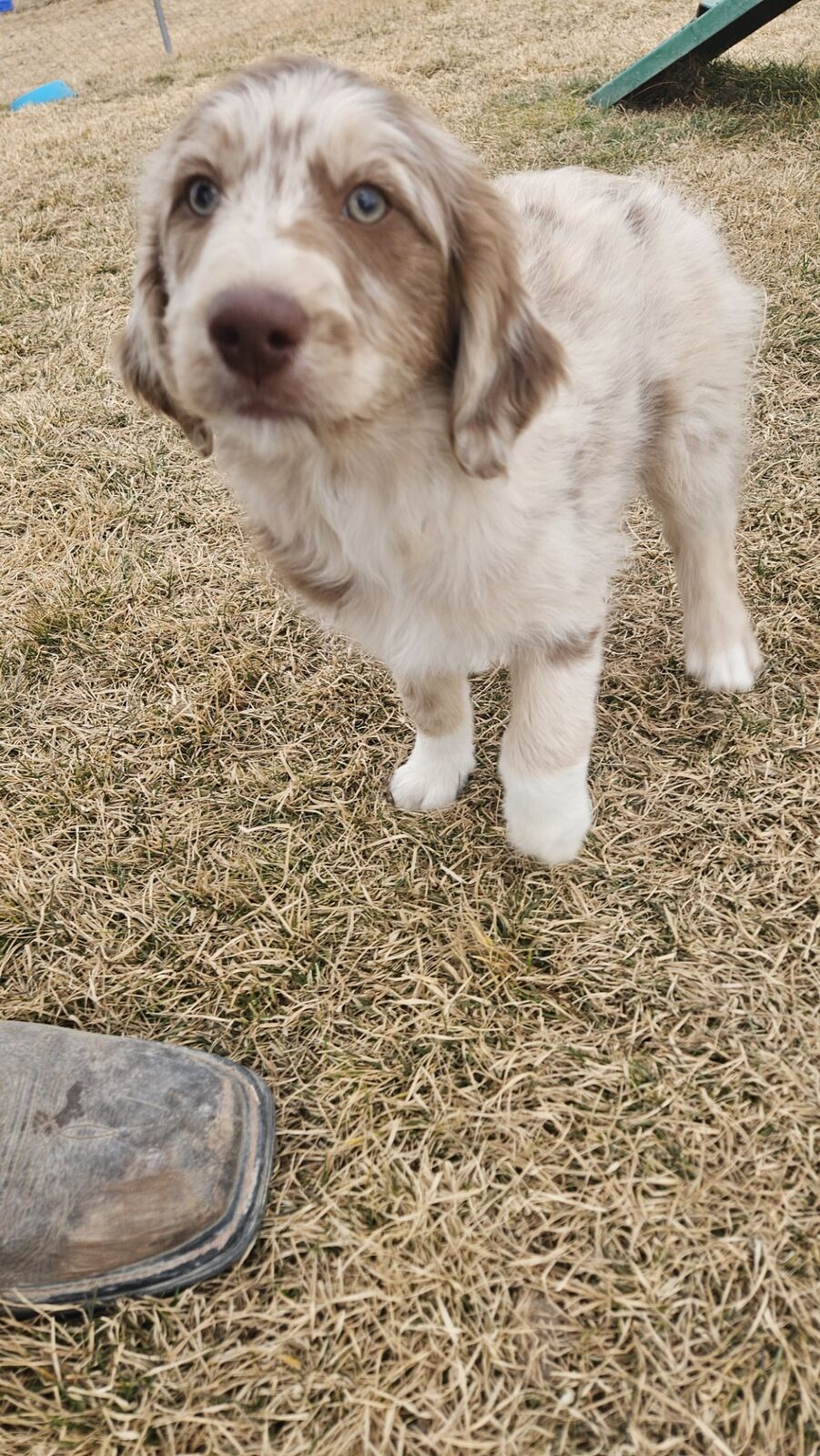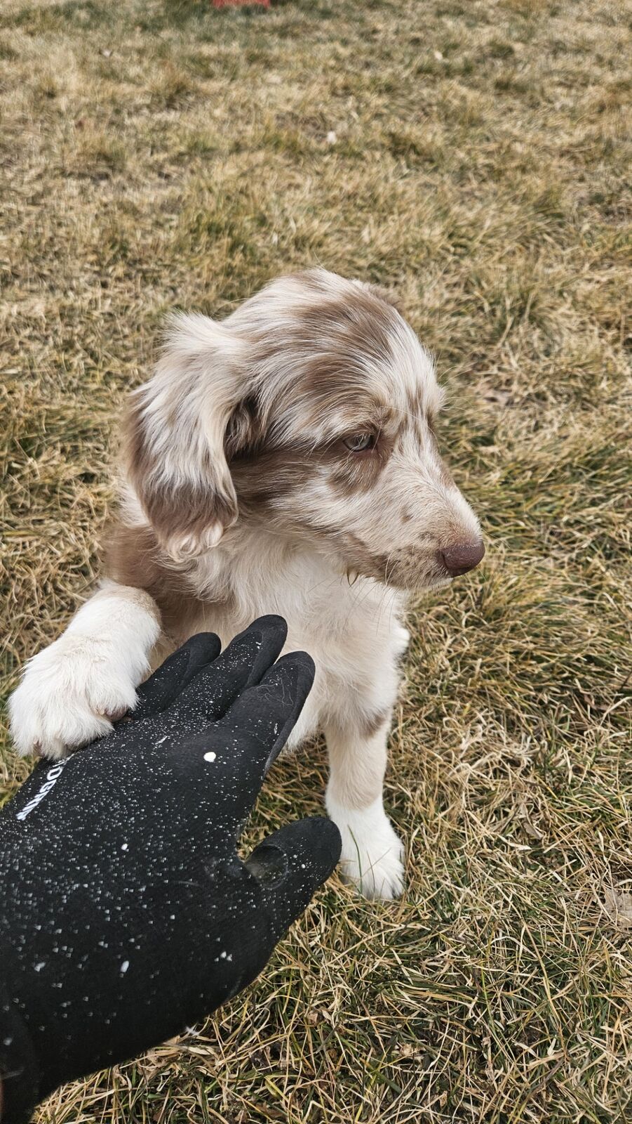 *THE GIRLS -*HOLLY - She is one of the two lighter Red Merles - we call her Holly Berry because the spots along her back kind of resemble berries. Very sweet and active