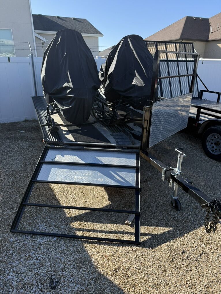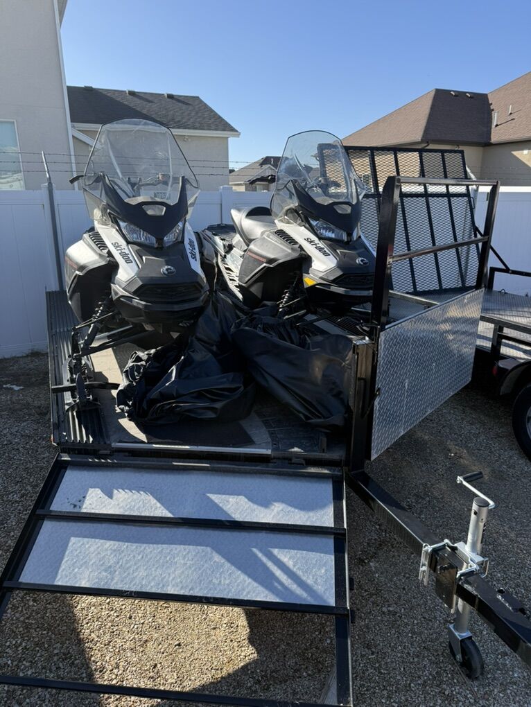 Package includes drive on/off 2 place snowmobile trailer. Trailer was completely redone this spring and looks new (sandblasted and powder coated; new deck which was sealed and rubber coated; Caliper TraxMat & Ski guides also installed; new springs/axels, new wiring, new tires, etc.).