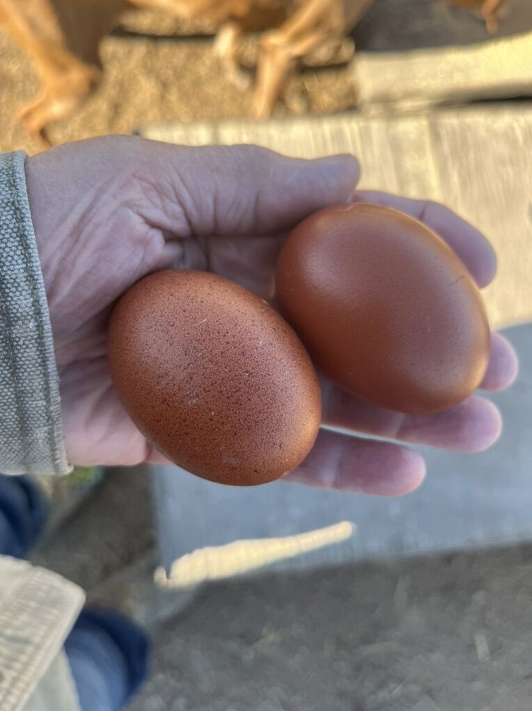I also have younger Salmon favorelle pullets that will be ready in about 4 weeks The favorelle hens are very calm winter hardy hens that are midsized when full grown and lay a freakish tan egg. Marans are very hardy hens that love to free range and lay a milk chocolate to dark chocolate colored egg. They mature quickly and are some of my earliest layers in the spring.
