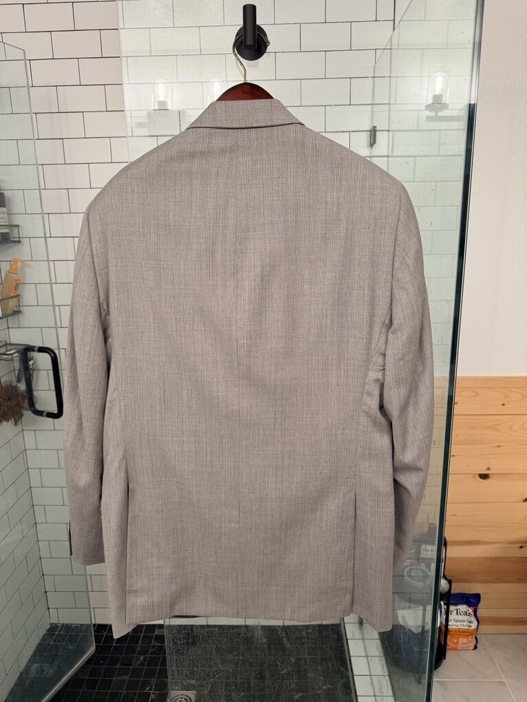 It’s a size 44L and has been professionally tailored. The pants are about a 36” (or 37”, can’t remember) and a 34”-ish inch inseam.
