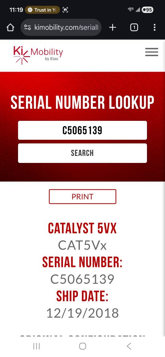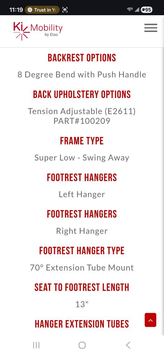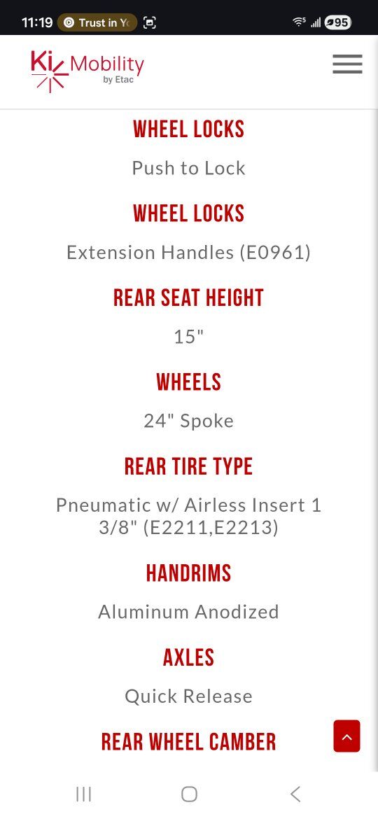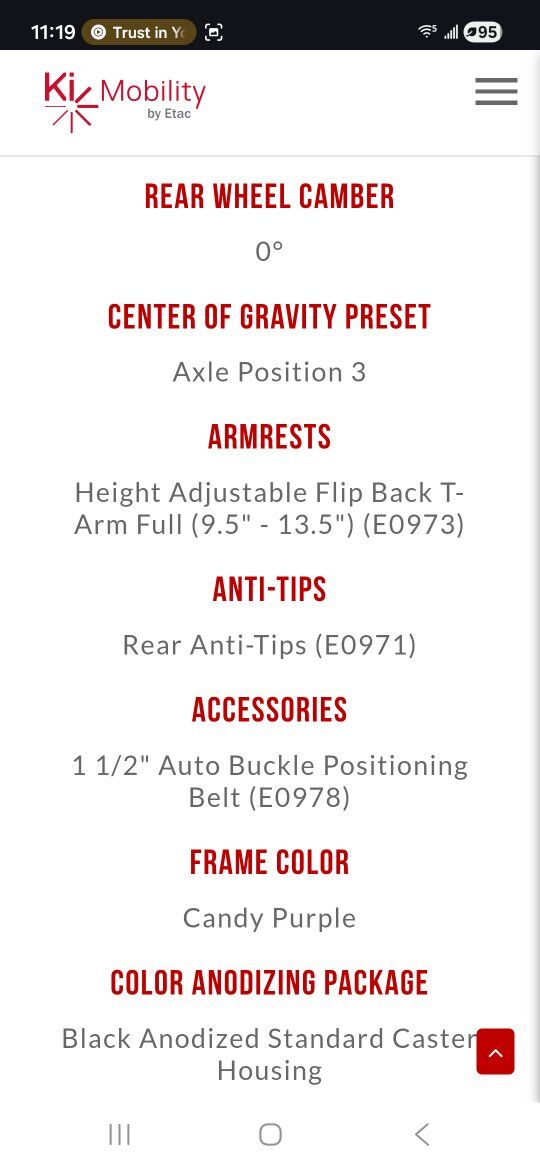 Youth Ki Mobility brand wheelchair. SN#C5065139 Look at photos for exact description.