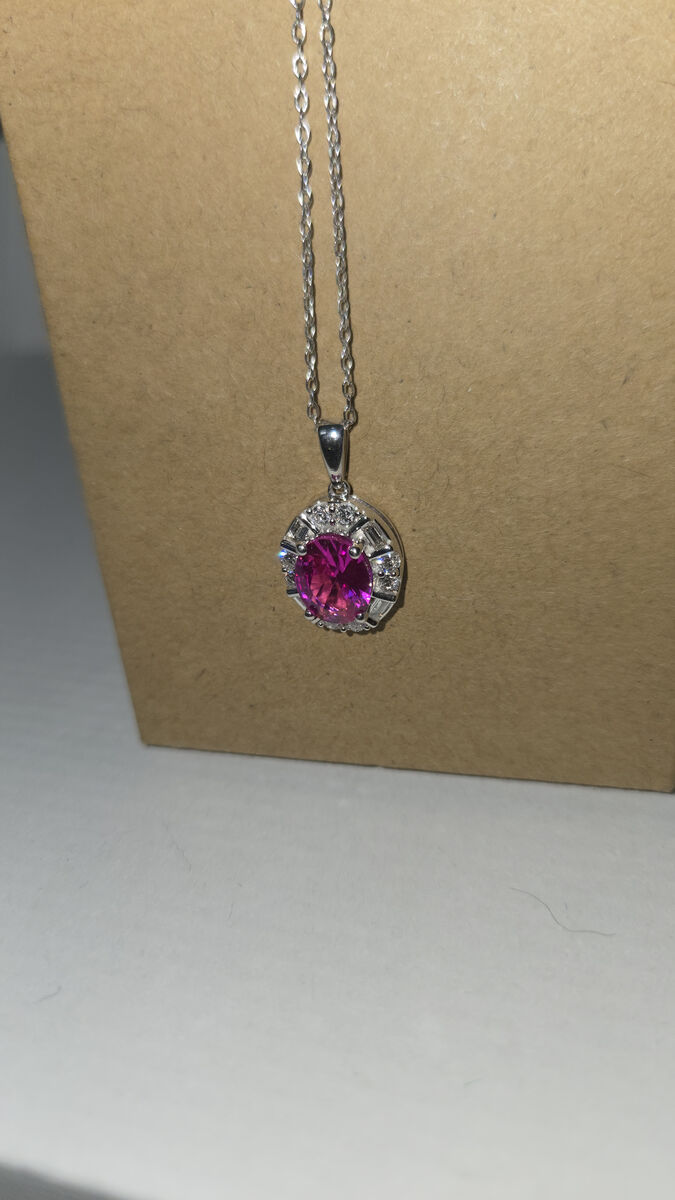 VenmoOval 2.50 ct Pink Sapphire & Diamond Necklace PGL Digital Appraisal Retail Replacement Value $1395.00 Laboratory Grown Gemstone: 1.85 carats Laboratory Grown Diamond: 0.50 carats Color Grade :G Clarity Grade: VS2 Sterling Silver 491896-96 NOTE: PGL Appraisal is a digital copy. If you would like the appraisal personalized with your name and address for insurance or personal use, please let us know and we can facilitate this for $59.