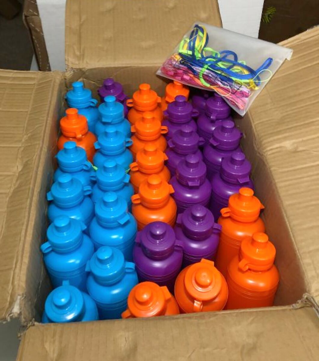 This is a case of 60 mixes neon colors waterbottles with carry strap.
