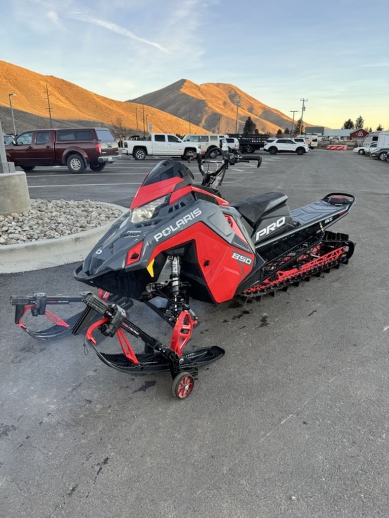 PLUS $250 IN STORE CREDIT ON ALL POLARIS ACCESSORIES!!! 2024 Polaris® 850 PRO RMK Slash 165 Zenith BlueUNMATCHED PRECISION IN THE TECHNICAL TERRAIN.The PRO RMK Slash delivers balanced and precise performance in the steep and deep.Features may include:UNMATCHED DEEP SNOW PERFORMANCEThe PRO RMK delivers instantaneous lift and lightning fast response. The tapered low drag tunnel and Polaris-exclusive tracks lift the lightweight chassis on top of the snow, and the low-inertia QD2 drive system creates incredible response. Plus, the all-new Series 9 325 Track is the newest track offering and puts the power to the snow quicker to deliver quicker acceleration and instantaneous lift for mountain riding in deep snow.Rider First Design. Effortless Control.The Matryx RMK platform is a backcountry rider's dream. The narrow seat, tank and console provide improved rider connection to the sled while the narrow bodywork enables more agility and less drag in the snow.Maximum Lift. Maximum Precision.The PRO RMK Rear Suspension features a balanced, optimized geometry and rail design to deliver power directly to the snow to pop up and drive forward. Rigid design allows for precision to hold lines in the most technical terrain. Available in 155 and 165 lengths.Choose Your Power.With three engine choices from the Patriot Family. Choose the benchmark in performance Patriot 850, or the SnowCheck-Exclusive Factory Mods… the ultra-responsive Patriot 9R or turbocharged Patriot Boost.PURPOSE-BUILT RIDE & HANDLING FOR THE STEEP AND DEEPWhen we build a sled, we build it to be the best sled for each unique riding style. Not simply a different sticker or name. Every part is scrutinized to deliver what you need as a rider.Ultimate ControlThe RMK Matryx Slash platform features a next-level rider interface and slashed, tapered tunnel. Combined they deliver minimized drag and maximum control.Lightning-Fast Response. Puts the Power Down.QuickDrive is the lightest drive system in the industry and produces the lowest inertia for optimum response. The all-new 325 Series 9 Track features a 3.5” pitch track with 3.25” tall lugs for ultra deep snow riding. The track features an aggressive Polaris-exclusive lug design for instant traction and forward drive in deep snow.Precise Steering. Confidence Inspiring.The RMK React Suspension lets riders effortlessly initiate sidehills and experience less fatigue with the most predictable ride. It includes a 36"-38" stance, a sway bar designed for predictable handling, and forged a-arms and spindles optimized for strength and durability.Lightweight and Precise.Choose from two shock options. Ultra-premium Walker Evans Racing® Velocity Shocks are the best of the best in various mountain conditions. They feature remote reservoirs for increased oil capacity to provide all-day performance and durability, along with compression adjusters to dial in the ride. The WER Lightweight Monotube Shocks are standard and feature a simple and durable one-piece design.