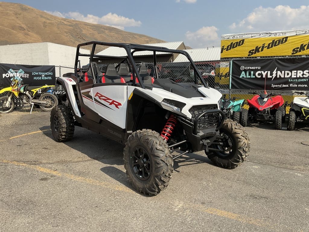 2024 Polaris® RZR XP 4 1000 SportLEGENDARY PERFORMANCEBEST-SELLING SPORT SIDE-BY-SIDEThe all-new RZR XP is the next revolution in multi-terrain performance. With a rugged design, more comfort and legendary performance, the RZR XP is built to take on the off road.Features may include:BUILT ON A RUGGED DESIGNYou want to keep riding and enjoying time on the trail with your crew, so our engineers pushed to design a rugged machine that keeps going right along with you. We focused on durability, protection and making a RZR that's easy to own.Take On Tough TerrainA new 25% stronger chassis provides improved agility, tighter fit & finish, and reduced vehicle noise for a more enjoyable ride. A redesigned driveline offers stronger half shafts, prop shaft, and bearings for increased reliability to keep you out riding longer.Designed To ProtectThe patent pending full coverage skid plate provides protection for critical driveline and engine components. A tubular front bumper protects the front end of the machine from trail elements.SPORT TRIM INCLUDES:29" Trailmaster X/T TiresRetractable 3-pt Seat BeltsDual-sweep Analog Dials with 4" LCDRZR XP 4 STANDARD FEATURES114 HP ProStar 1000 Gen 2 EngineWalker Evans Racing® Needle ShocksFront Bumper, Full Skid Plate, Full Doors6-Position Accessory Pulse BarLED Head LightsRaised Rear SeatingRaised Rear SeatingRIDE COMMAND+ with Accessory Purchase
