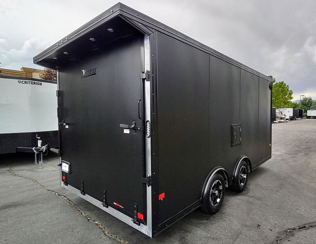 PRE-ORDER NOW!! UTV PKG!!! UTV Pkg includes 6 inches extra height, Torsion Axles, Spread Axles, Upgraded Aluminum Mag Wheels, V-Front, 36" Sloped Design, (2) Rows of Slide Track w/ (4) Sliding D-Rings, and more! Xpress 8.5x16 Extra Wide!!! 4 YEAR FACTORY WARRANTY!!! You need to see the workmanship in person, these are not your standard cargo trailers, these are the TOP OF THE LINE!! PREMIUM!!! BLACK OUT PKG!!! All Aluminum Enclosed Cargo with UTV Pkg!!! UPGRADED WHEELS!!! REAR CANOPY WITH RECESSED LIGHTING!!! Super heavy duty Spare Tire Mount, no breakage here!!!! 7PB043640