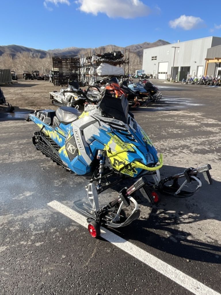 2020 Polaris® 850 PRO-RMK® 155The Ultimate Mountain SledRewrite The Rules for the Rest to FollowThe PRO-RMK® 155 is the lightest, strongest, most flickable deep snow sled on the market. The world's best mountain sled features the industry's best power-to-weight ratio to give the rider instantaneous lift and immediate response.Features may include:Instantaneous LiftThe combination of the raised and lightweight AXYS® chassis, a powerful Polaris® engine, and the Polaris-exclusive track designs pop the PRO-RMK® 155 on top of the snow.AXYS® ChassisThe raised AXYS® chassis increases clearance and reduces drag to keep you on top of the snow. It is purpose-built for mountain riding and allows for improved sidehilling, faster and easier climbing, and instantaneous lift allowing the sled to pop onto the snow faster. The aluminum over structure is lightweight and durable for all types of riding. Taller spindles increase clearance to reduce drag.Liberty® Engine Choices for Every RiderBuilt to integrate seamlessly with the lightweight and agile Polaris® chassis, Liberty® engines feature class-leading power-to-weight ratios and set a new benchmark for ultimate performance with our complete line-up of powerful options.Rear SuspensionThe lightweight, rigid rear suspension design features revised geometry to control pitch. This improves weight transfer, delivering better control and a more compliant ride. The rigid suspension delivers power directly to the snow. Off-trail, riders will notice improved weight transfer while maintaining the approach angle. On-trail, riders will notice a more compliant and comfortable ride. The rear suspension features a rail design that helps lift the rear skid while driving it forward.Walker Evans® ShocksThe PRO-RMK® 155 comes with premium Walker Evans® Piggyback Shocks or Monotube Shocks. The Walker Evans® Piggyback Shocks with compression adjusters and remote reservoirs offer the best performance across the broadest range of conditions. The Walker Evans® Monotube Impact-Extruded Shocks are the lightest weight shock option from Polaris® for those riders counting the ounces. The one-piece, simple design is lightweight yet durable. 850 models include exclusive SLS Lightweight Springs.QuickDrive® Low Inertia Drive SystemThe QuickDrive® System is designed to make the sled rev quicker for instantaneous lift and reduces rotational inertia by 21% for easier handling and flickability. Not simply a belt-drive, it's a complete lightweight drive system.Rider Balanced® ControlThe AXYS® platform features Rider Balanced® positioning that delivers ultimate control for the rider for precise, effortless sidehilling.AXYS® Body Panel DesignThe AXYS® PRO-RMK® features a compact body panel geometry and design that help give the sled the best lean angle in the industry allowing it to hold even the steepest sidehill lines. The PRO-RMK® does not "panel out" like other sled brands.The SnowCheck-Exclusive 850 PRO-RMK® 155 - powered by the all-new Polaris® 850 Patriot™ engine - offers the best power-to-weight ratio.SnowCheck-Exclusive 850 Patriot™ EnginePRO-RMK® React Suspension™Shocks: Walker Evans® Monotube / Piggyback ShocksTrack Options: 15 x 155 x 2.6" Series 6 / 15 x 155 x 3.0" Series 7QuickDrive® Low Inertia Drive System