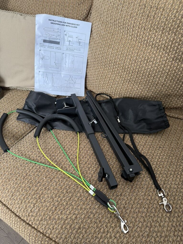 VenmoWe used this once with our small-medium Maltese dog. It is sturdy, good quality.items in photo only. Arm, straps, clamp, instructions. Does not come with table or dog. Image for display purpose only. $30 OBO