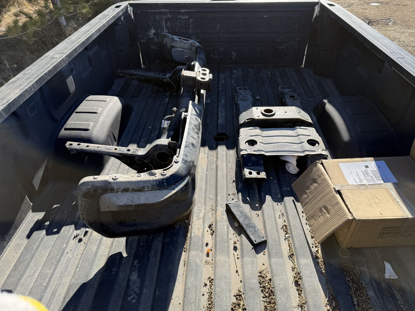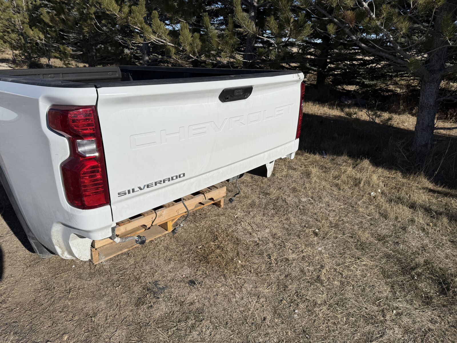 Bed came off a 2024 summit white long box cheverlet 3500 work truck model.. bumper is black and fifth wheel plate is factory model.. no dents or scratches or scuffs asking $1200 for all of it or OBO