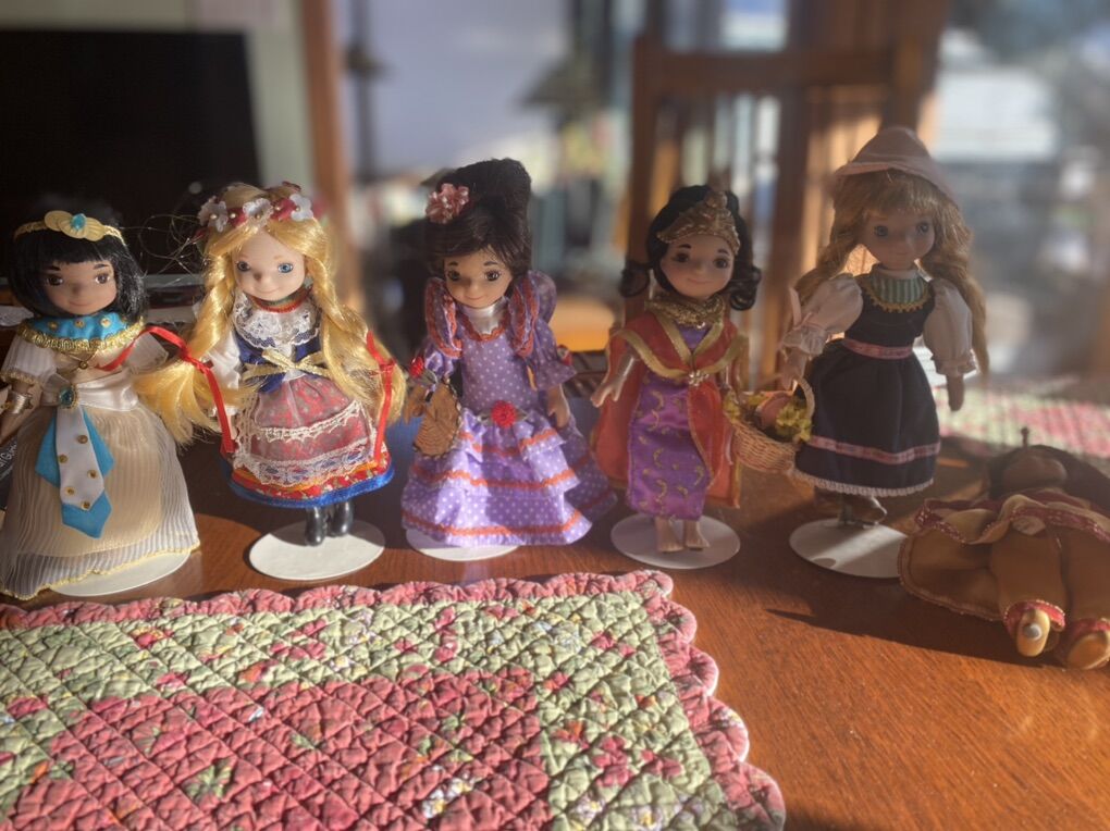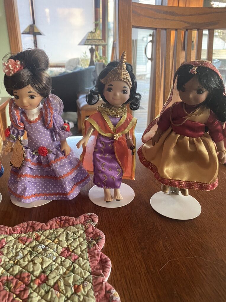 It’s a small world dolls. Made by Brass Key. These have been displayed. The long haired ones need hair combed and rebraided. Thailand, Egypt, Spain, Holland, Poland and India. Fun for your Disney collection. These you can enjoy and a child will love to play w them. $50 for all six. Cash only. Near BYU stadium.
