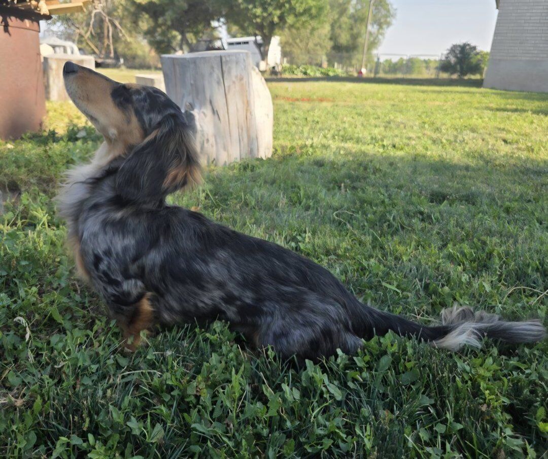 VenmoMeet Goose, a very handsome black and tan dapple long hair 1 year old mini dachshund (11 lbs) looking for a date! He’s an adventurous little guy that enjoys camping, fishing, hanging out with his farm friends, and playing with his best buddy a 3 year old cowboy! Hes got an amazing temperament, hes very good with all animals and kids!! He is AKC registered and has had testing done through Wisdom and through Embark, all came back clear! We are offering him via AI only, (Artificial insemination). All the AI's that I have seen go very smooth and easy, we take care of my dog and yours, the whole process only take about 30 minutes or less! This is to protect Goose, and your female as well. The breeder that he came from helps and handles the AI, there will be 2 AI offered, if you’d like more it’s an additional $50 per. (Comments from the breeder: We like to do the first AI on day 9 but if you're not sure of your females cycle day, we can do one on day 8. It is better to be early than late. I am very experienced with AI, I've been breeding for 17 years.) She is located in west haven, we will plan a day and time for you to bring your female to her and I will also meet there with him. (You can meet him prior if needed) He has been proven and makes stunning puppies!!