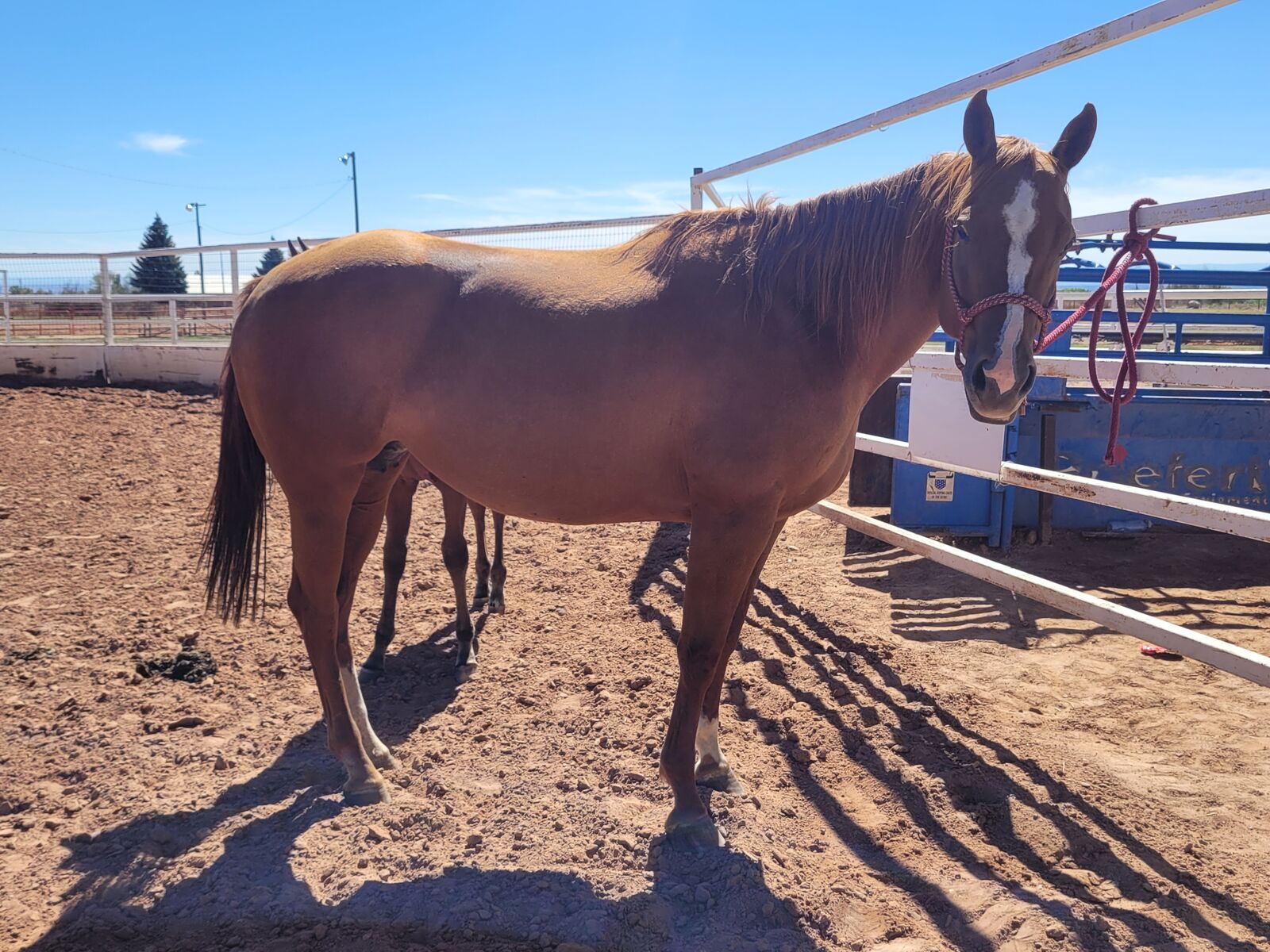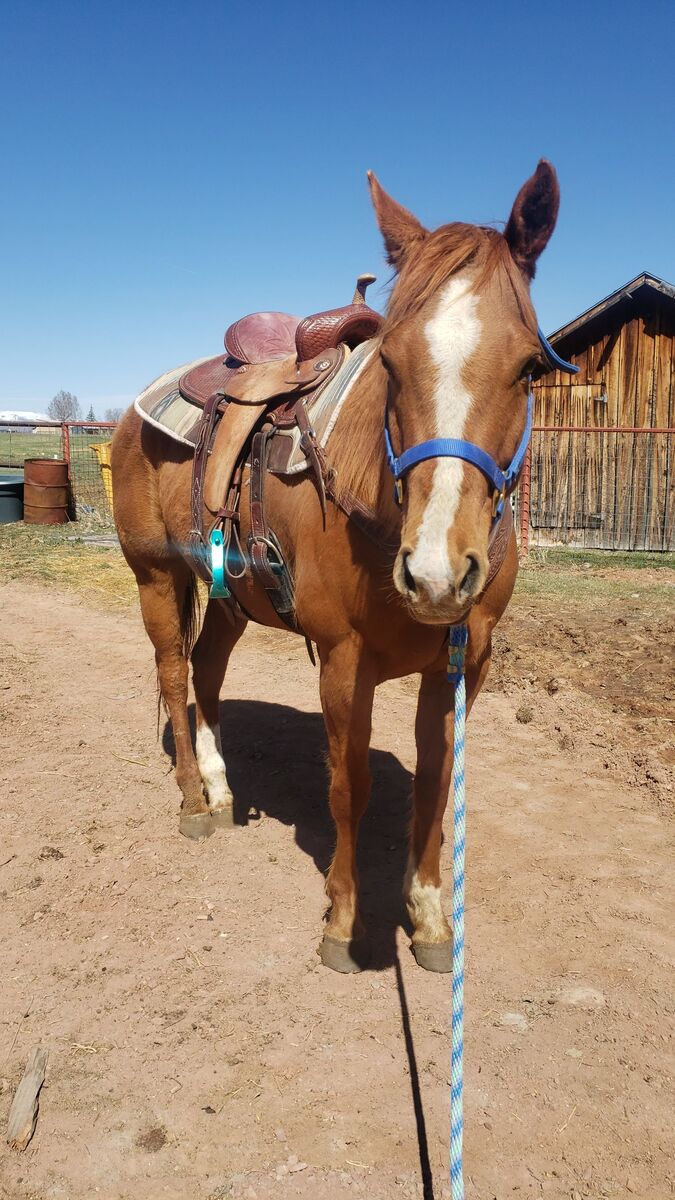 VenmoLocated in eastern UT. Stands around 15.1-15.2 hands. Had teeth done in october, feet trimmed and up to date on wormer. She leads, loads, ties, does great on lunge line. Has had shoes on all feet. Has had 3 babies, one being in 2025 that is pictured, really good mom. She is broke to ride but needs an experienced rider that won't let her get away with her red mare attitude when she has it. She is very soft, knows some voice cues, has an amazing stop. She is very smart and athletic but also reactive. Not a kids horse. Has been roped on in the past and has loped the barrel pattern as well and picked up on it quickly. Not the lovey in your pocket type unless its on her terms. Willing to negotiate price a little or also trade for an older but not dead head horse for my 7yr old.