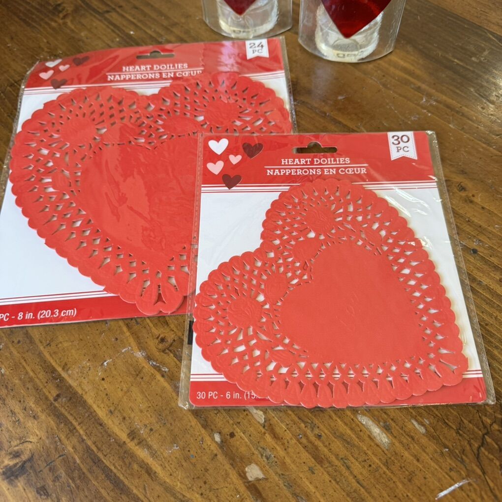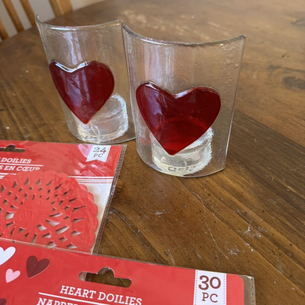 Tag Glass Valentines Valentine Heart Tea Light Holders and Doilies