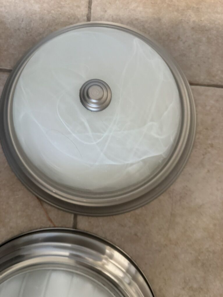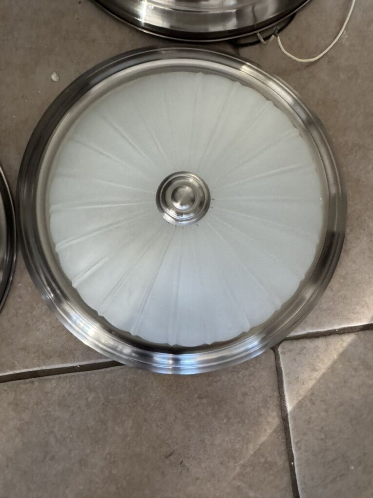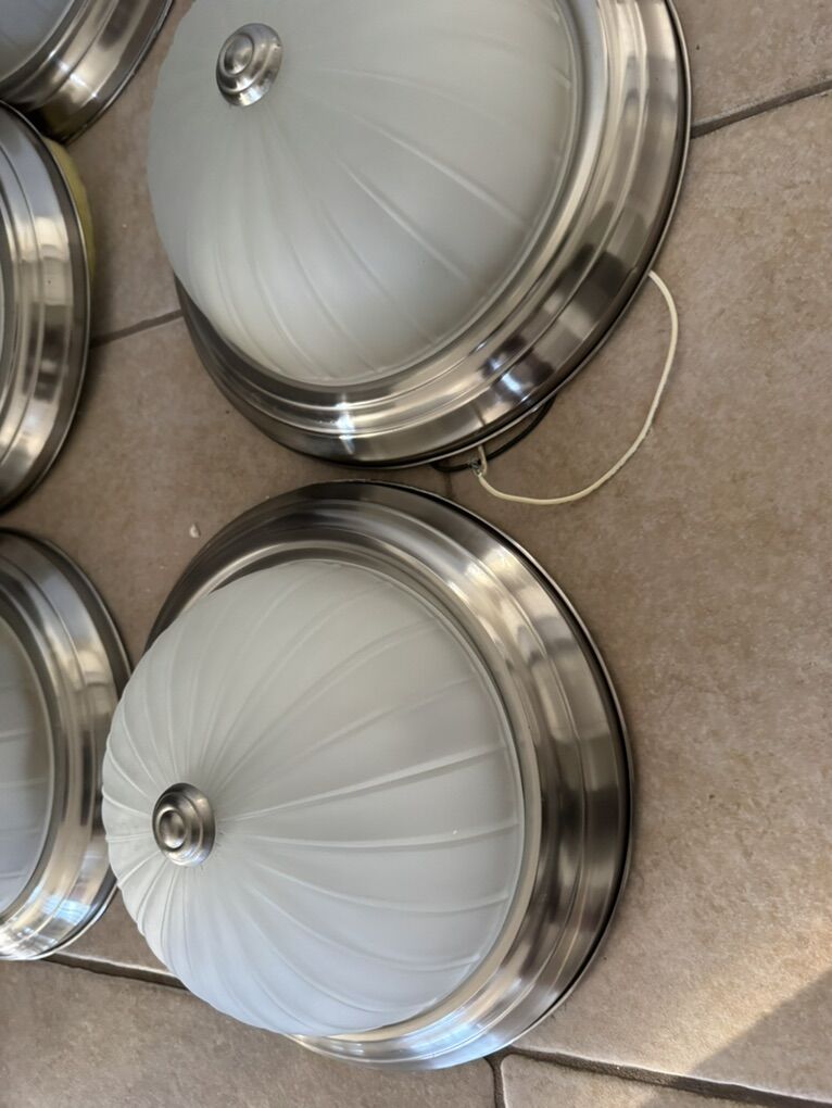 6 ceiling lights recently taken down and ready for a new home. 5 are the same and 1 is slightly different.