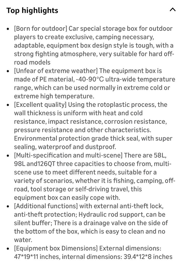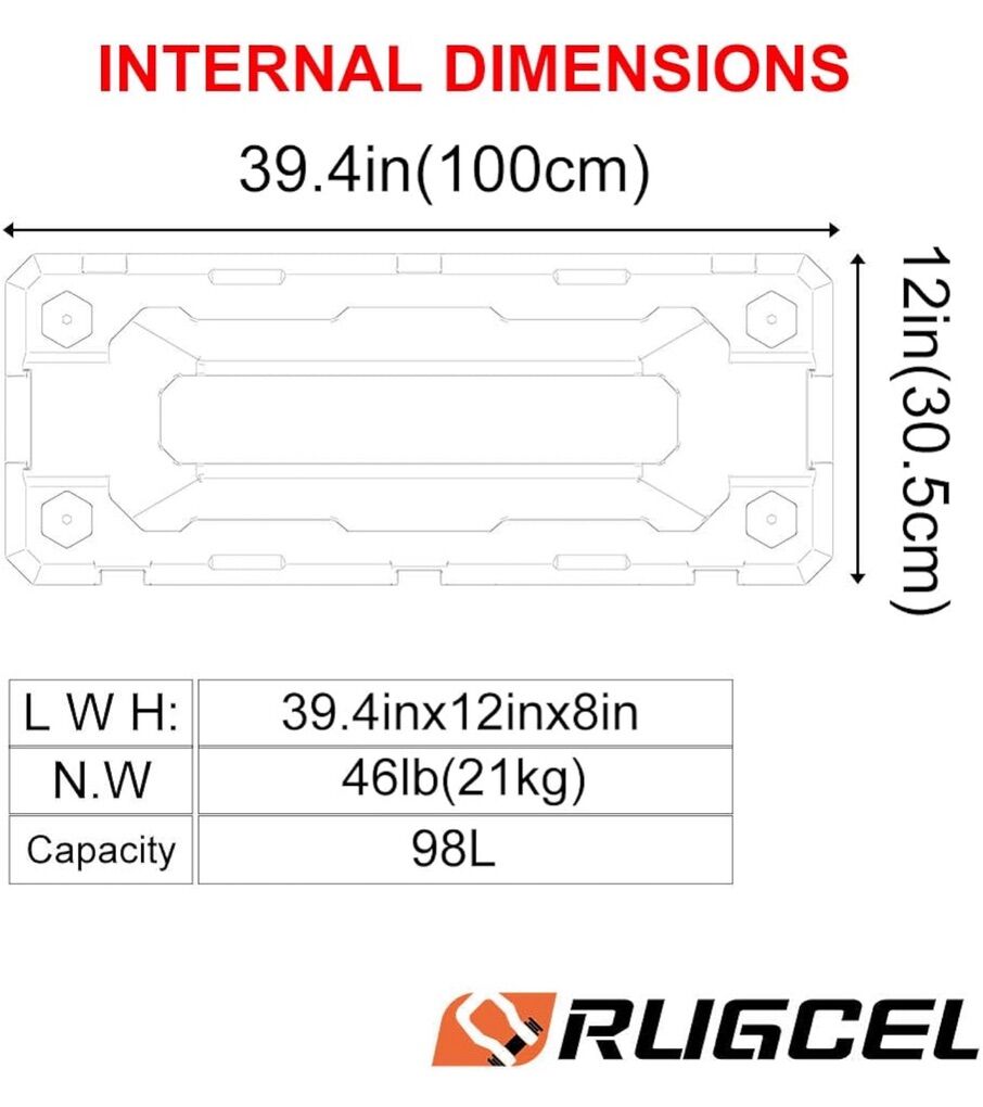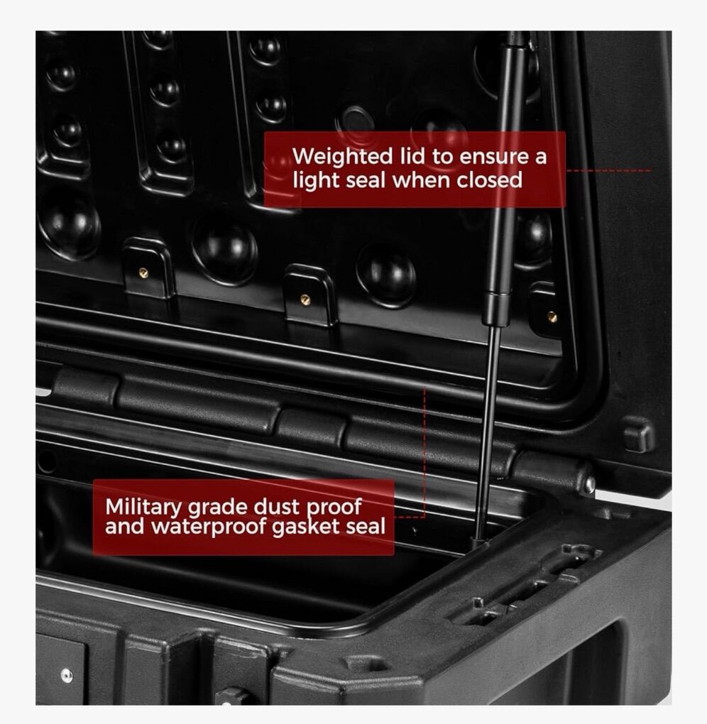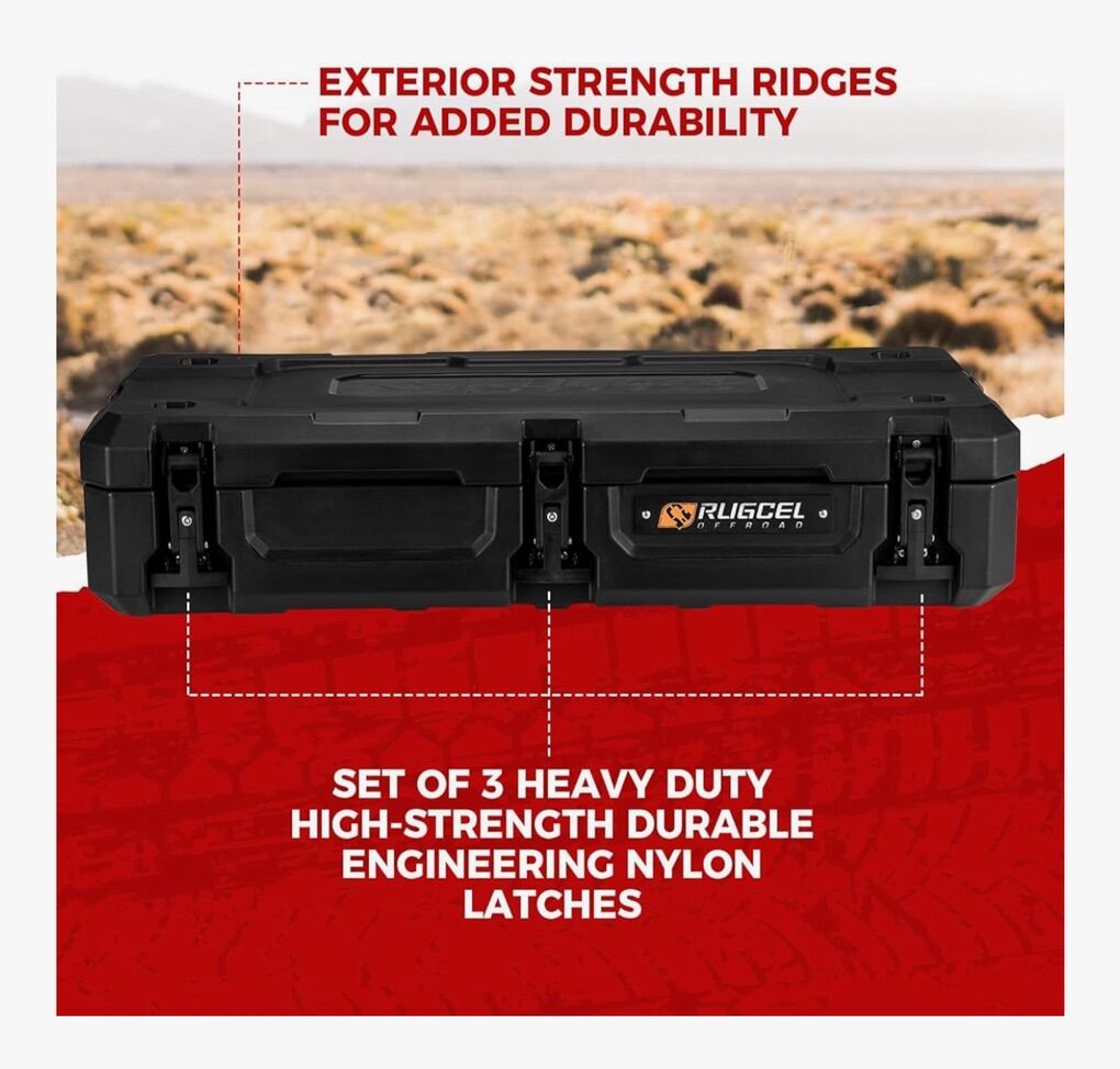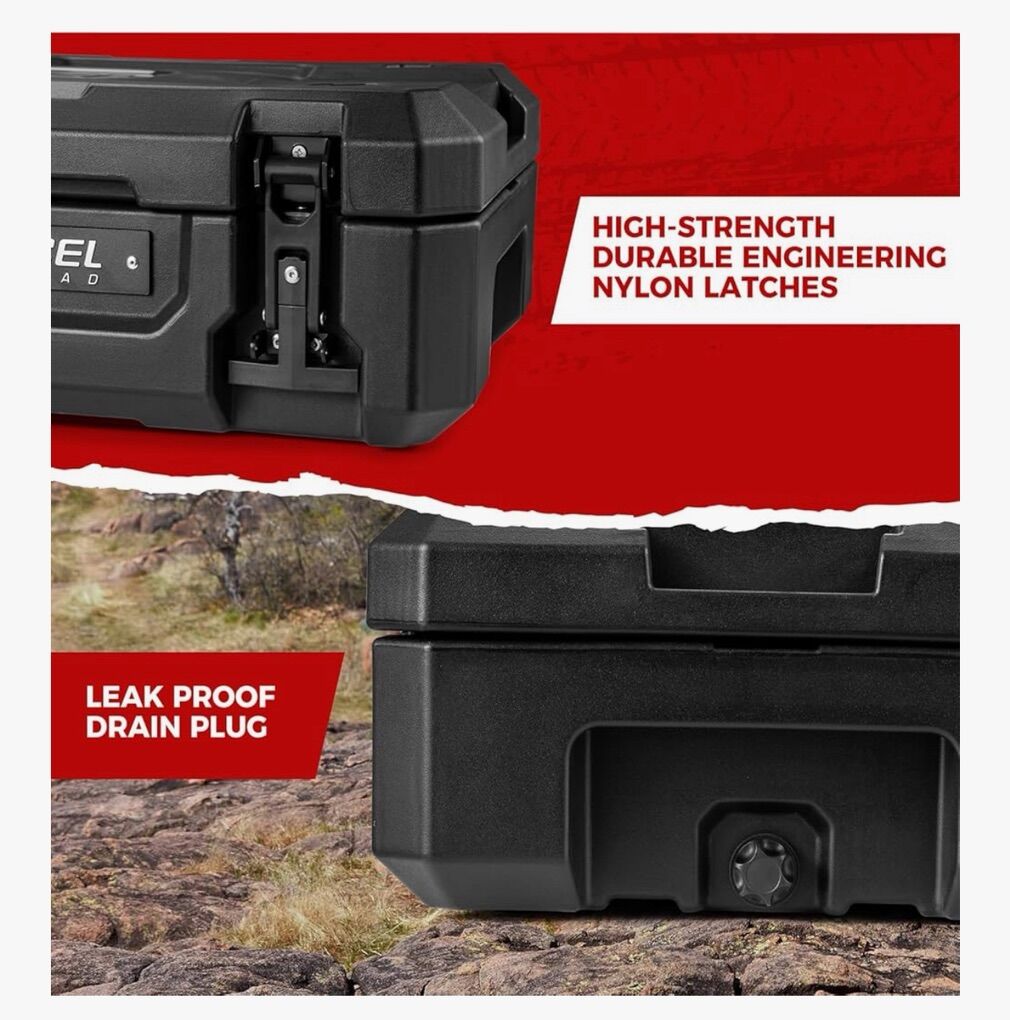 Description- Heavy duty 98L overland and off-road waterproof storage box/toolbox. It also hase a built-in drain and can be used as a cooler. Comes with hardware for optional roof rack mounting. See photos for more product information and specifications.