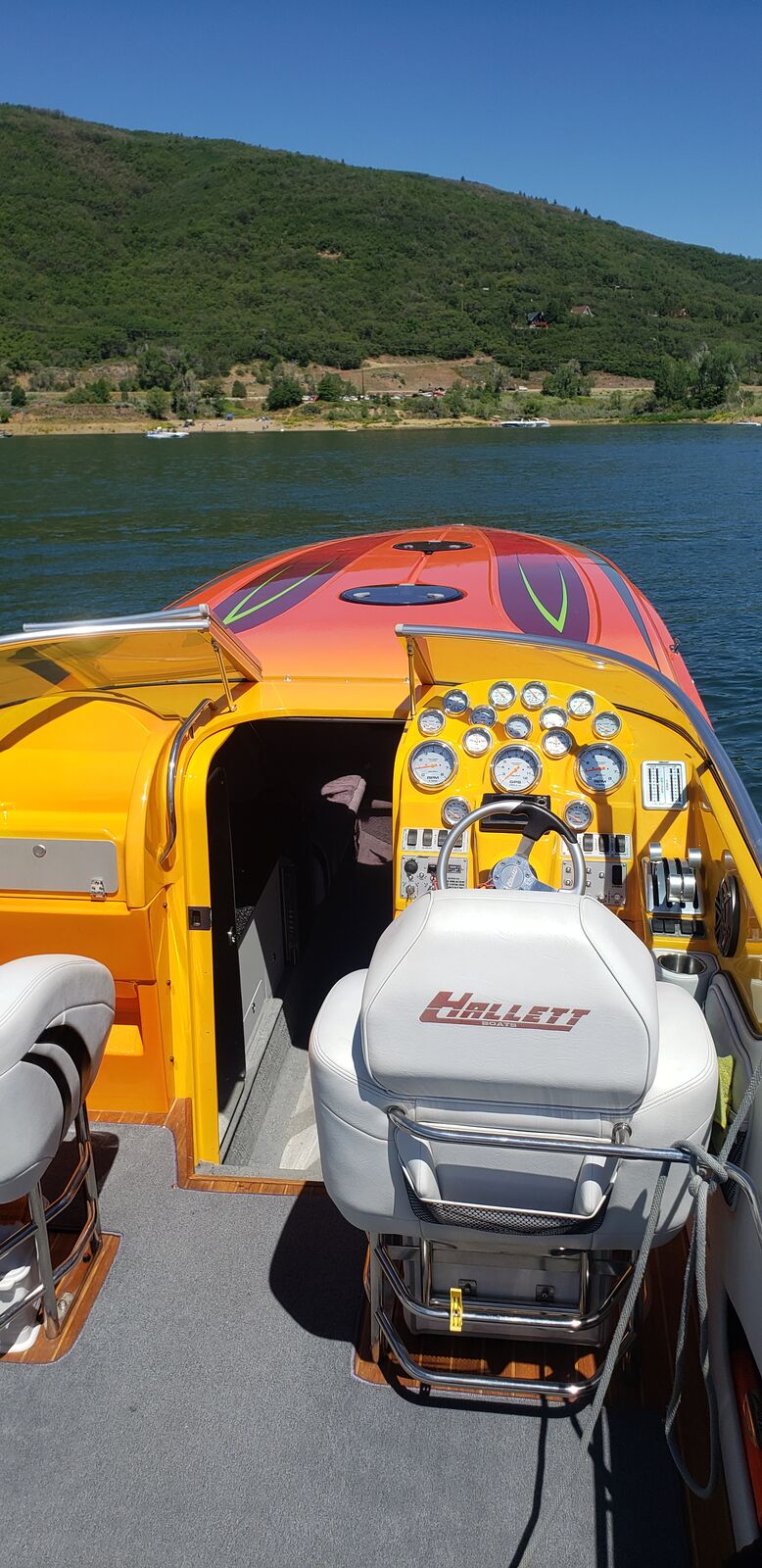 2009 Hallett 400T is truly a one-of-a-kind boat. The boat is powered by twin GT Performance 572 ci Whipple charged 1200"s paired with Bam Transmissions and #6 dry sump drives. Fresh top ends and newly refurbished superchargers from Whipple. Upgraded big JL sound system, fully functional bathroom on board, and easy side door access while on the beach or out on the water. This boat is awesome to drive and handles like a dream. Does not disappoint. The colors on this boat are amazing and look even better in person. Some of you looking may have seen this boat before and if you have, this is the one you saw. It's the only one with this color scheme and power. It was also featured in Powerboat Magazine. TOO MUCH TO LIST. Please call or text me at 801-815-7634 for additional info, pics and videos. Anthony.