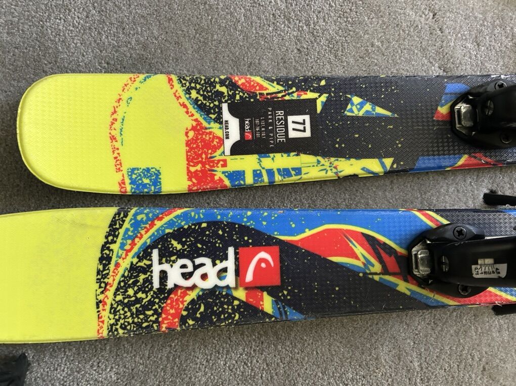 Head ‘Residue Park & Pipe” rocker tip and tail skis (size 77 / 50” long, $500 retail)