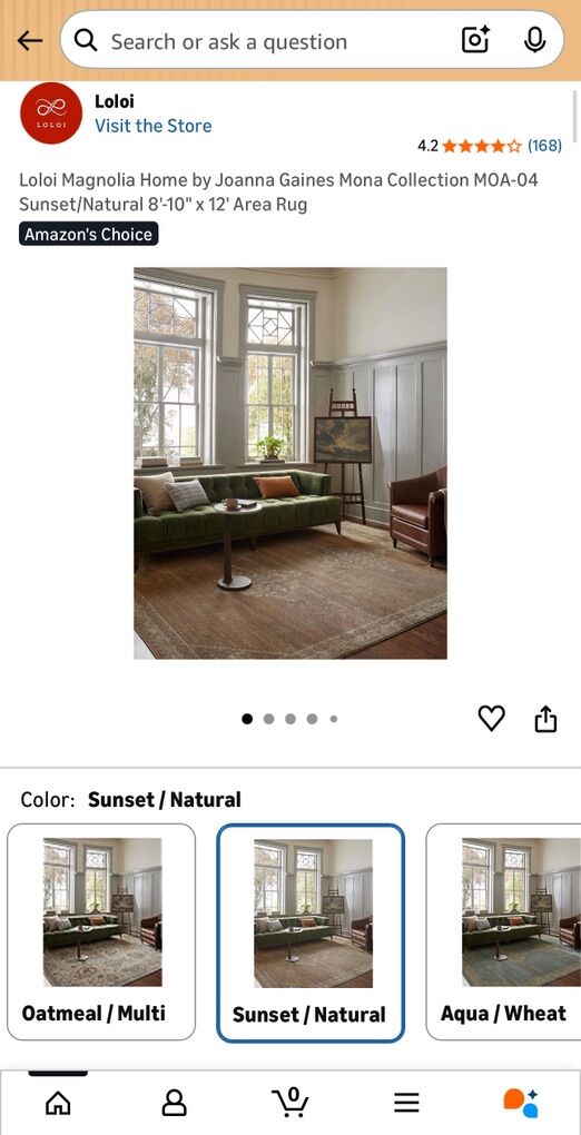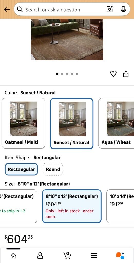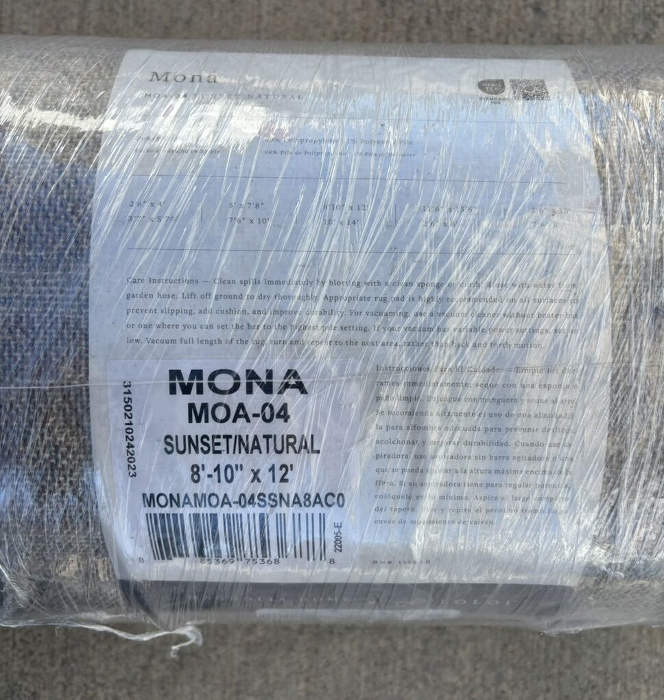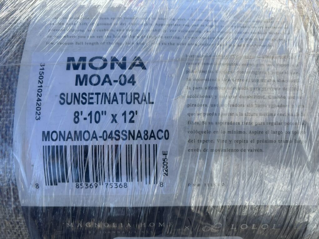 Description- 8’10” x 12’ Mona Collection by Magnolia Home/Joanna Gaines area rug in sunset/natural. See photos for more product information and specifications.