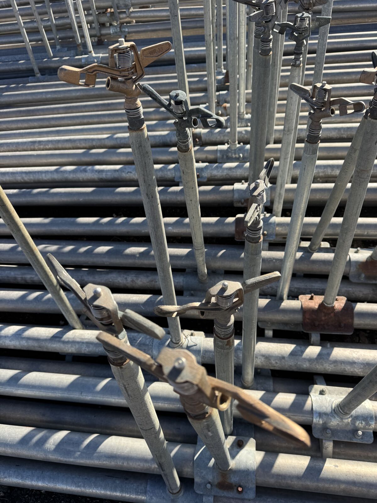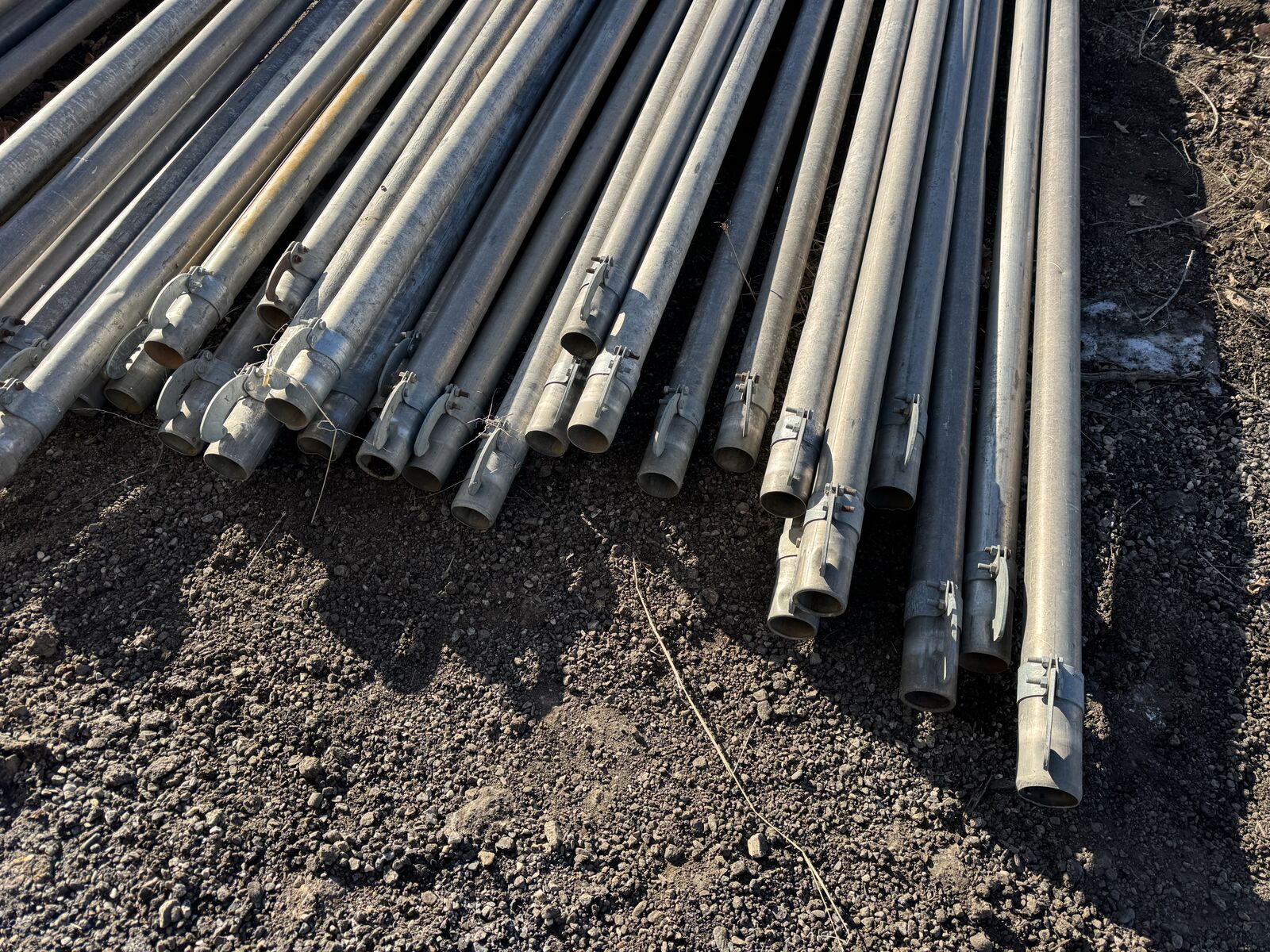 I have sold the property where I was using this pipe so I am going to sell it. It is hook and latch with pierce metal ends that are much stronger than the aluminum ones they also come with flow control nozzles. Cash only on pickup no exceptions and no scammers, codes, cashiers checks or money orders. $105.00 each or $3000.00 for a quarter mile most have newer sprinklers.