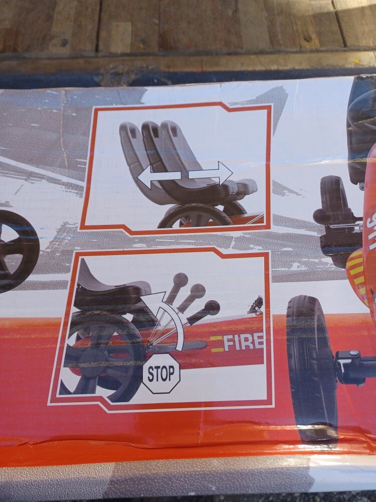 Hauck Speedster pedal go-kart with adjustable bucket seat for kids ages four to eight Fire Rescue brand new any questions please message me