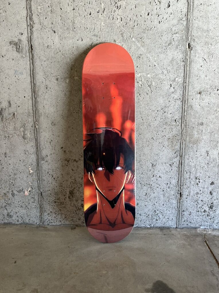 Solo leveling Sung Jin-Woo skate deck. 100% maple Canadian wood. Manufactured by Anteiku board.co. Brand new one of one.