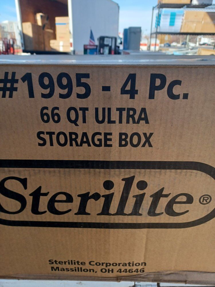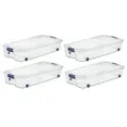 Sterilite 66 quart wheeled latch box, clear under bed storage bin with lid, blue latch, four count brand new any questions please message me