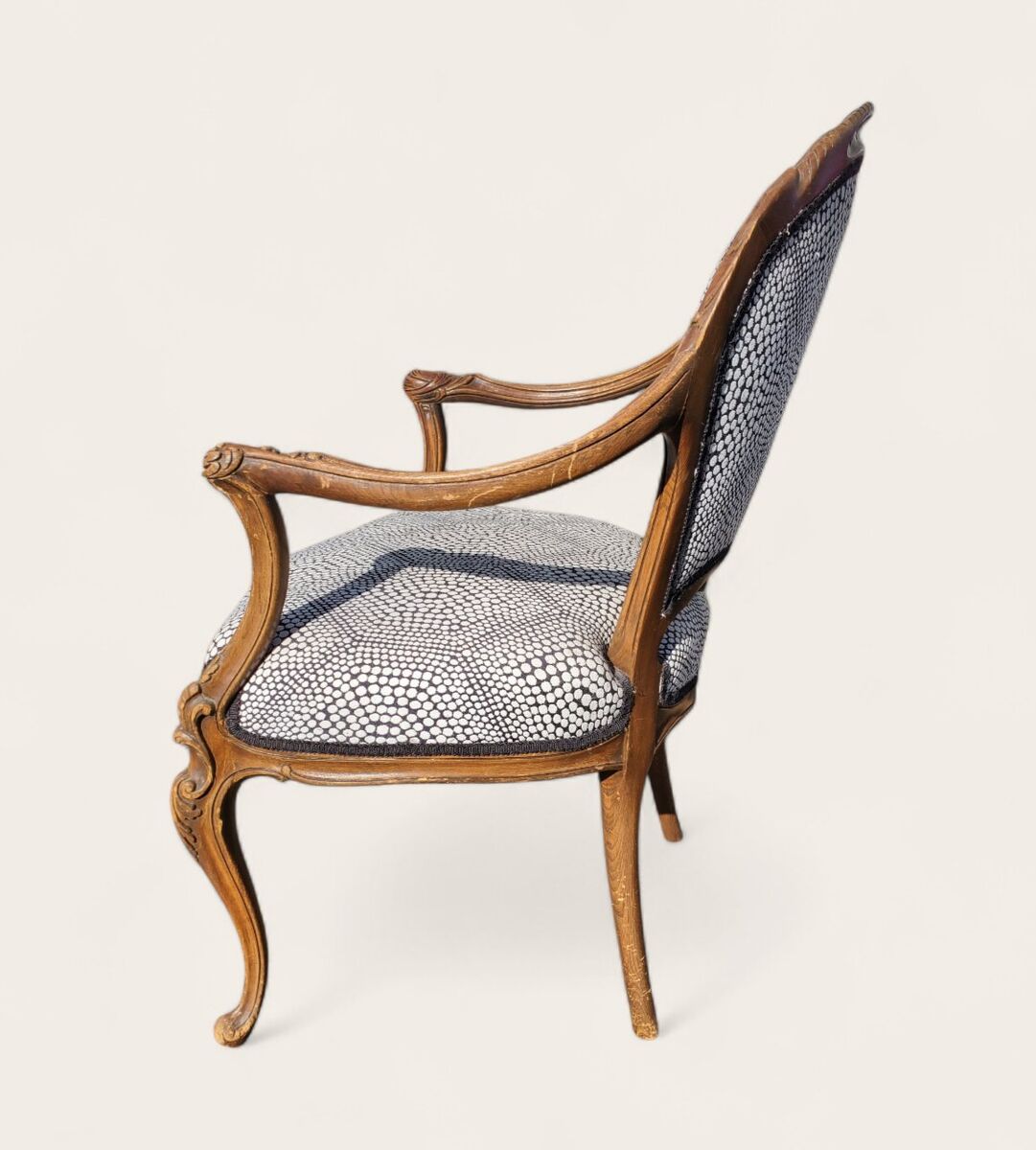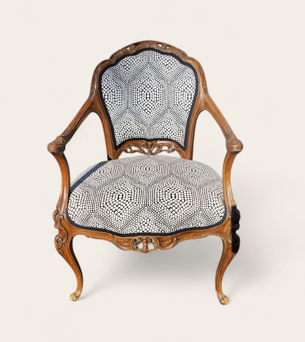 vintage | antique | ornate carved wood | reupholstered | cabriole legs
