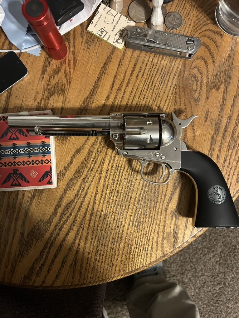 This is a C02 powered Colt 45 that has a bad C02 leak making it incapable of shooting. The gun is beautiful with no scratches or blemishes. The cylinder rotates as it should. It makes for a great display or could be used as a prop in cosplay situations It may be repairable but I don’t have the expertise.