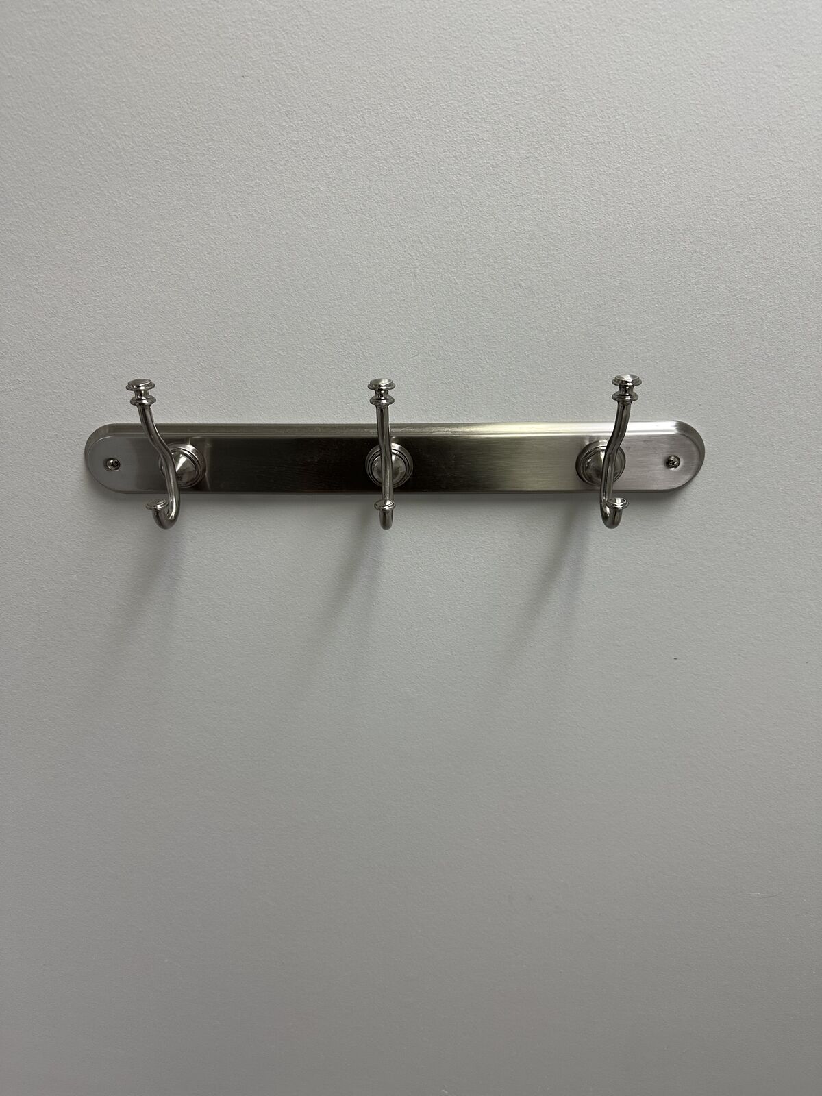 Hardware from a business office- 3 single hooks, 7 a 3 hook coat hangers and 46 handles for drawers and cabinets. $2 each. Used but like new.