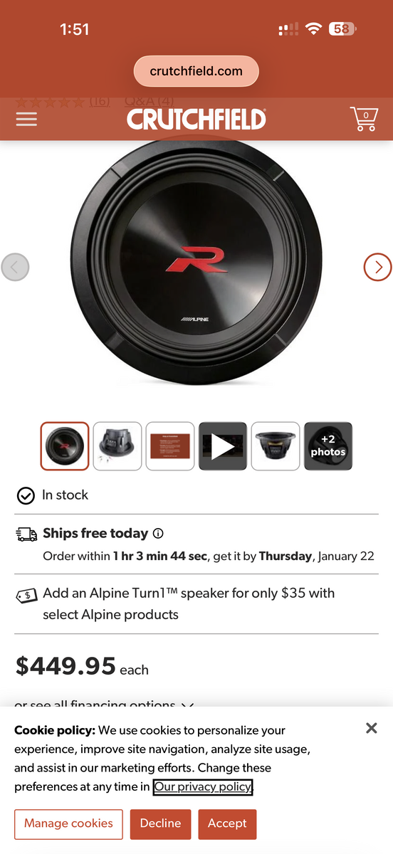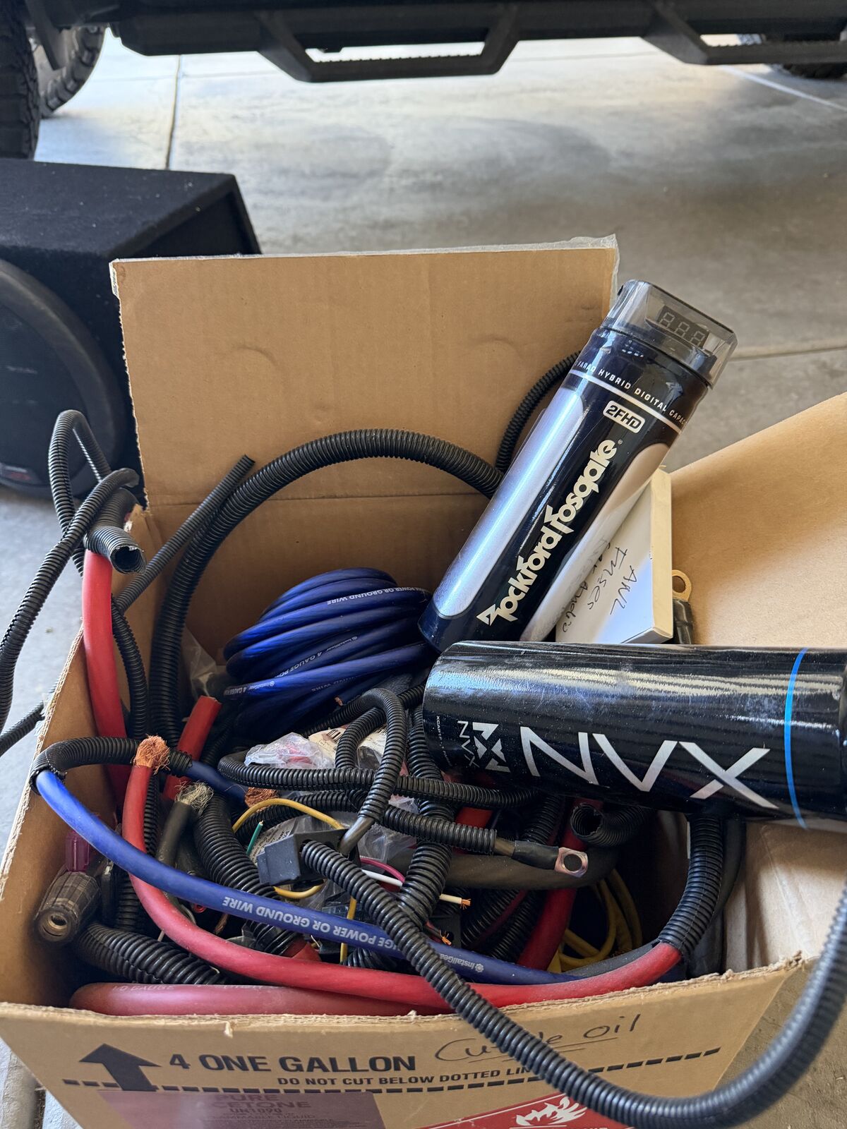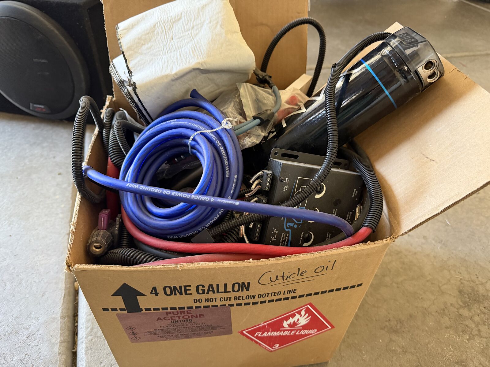 VenmoComplete kit. Alpine R series 12" dual sub with custom box. Kicker CXA1800.1 amp. LC7i control. 0 gauge Rockford Fosgate power kit with Fuse. And Capacitors all in like new condition. I sold my car now I have a family van with kids. If you are a real audio guy you know how much these cost me. Just one single Alpine R Series 12" sub alone without box is almost worth my asking price.