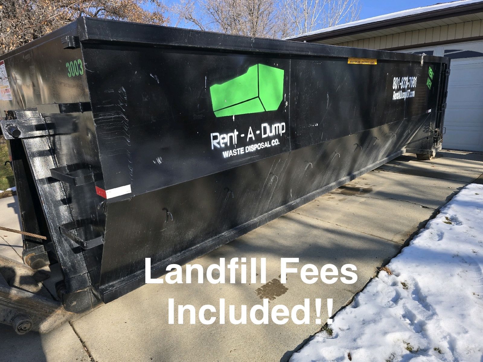 Look no further! Rent-A-Dump offer different sized dumpsters to meet all your project needs at affordable rates! With prices staring at just to $250 for Salt Lake County. Landfill fees and 7 days included in the price. You can’t go wrong with that!
