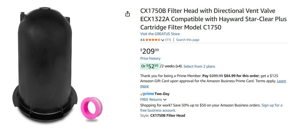 ApplePayCX1750B Filter Head with Directional Vent Valve ECX1322A Compatible with Hayward Star-Clear Plus Cartridge Filter Model C1750
