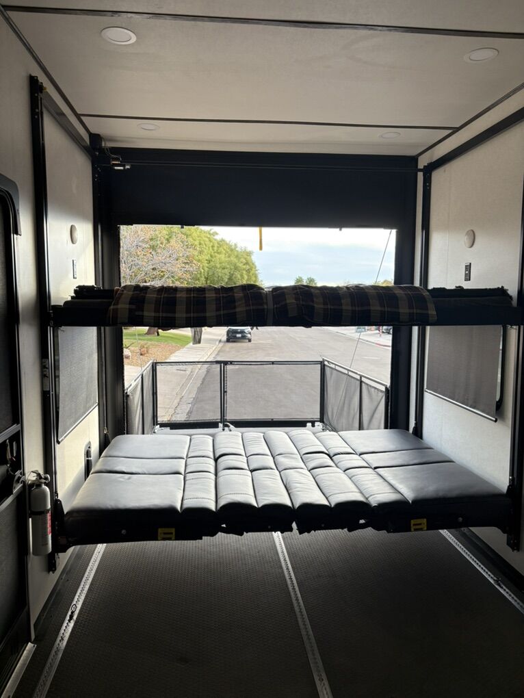 • Large 15’ garage – fits full-size 4-seat side-by-sides, including the RZR Pro R (something most toy haulers can’t accommodate)