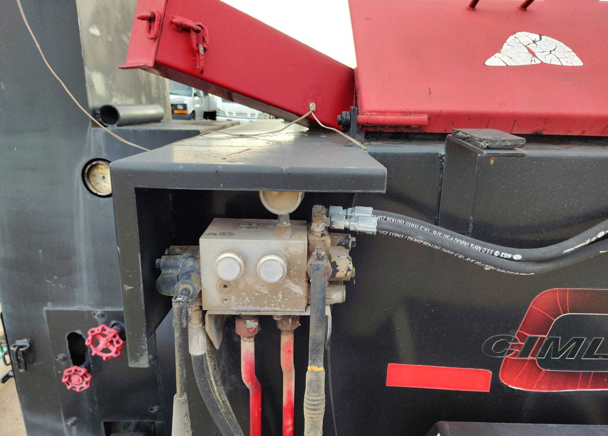 The diesel burner provides indirect heat through the transfer-oil system. Hydraulic controls operate both the agitator and the pump. Trailer has a pintle hitch, single axle, and 16” LT truck tires. Strong layout for road work, parking lots, and pavement maintenance crews.