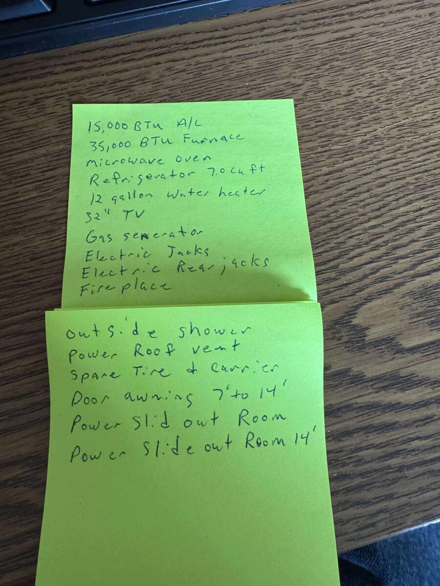 All hookups, cords, propane tanks, Anderson hitch, generator etc included