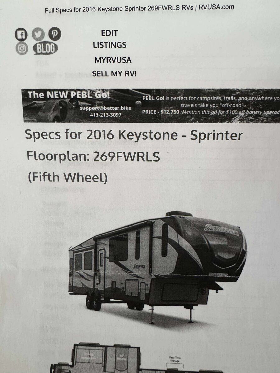 2016 33’ Keystone Sprinter 5th Wheel with 2 slide outs