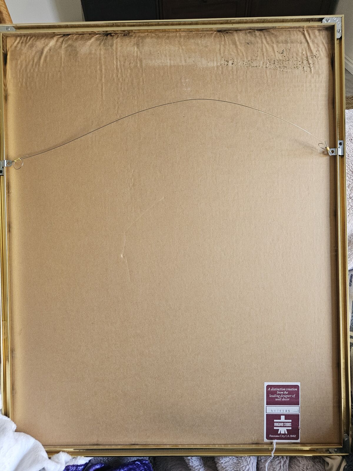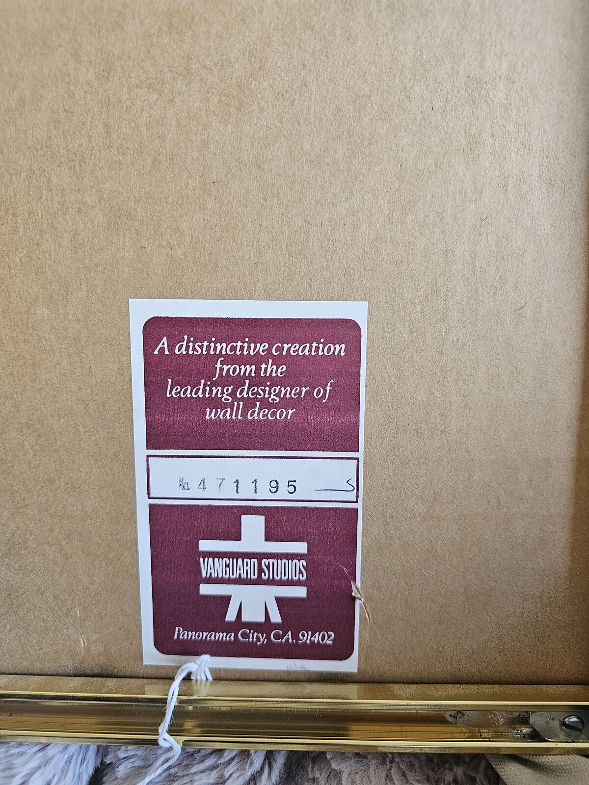 VenmoThis is a Vunguard Studios fun wall print (still has the original Vanguard label on the back). It unfortunately has damage on the top side of the frame as it had moister come through from improper storage, although the painting seems intacct. It comes in its original quality Nielson metal frame. Would love for it to find a home/be restored